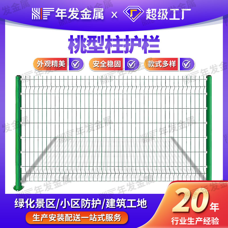 복숭아 모양의 기둥 울타리, 조경 및 토지 안전 격리 삼각형 굽힘 울타리, 철망 울타리의 현물 공급