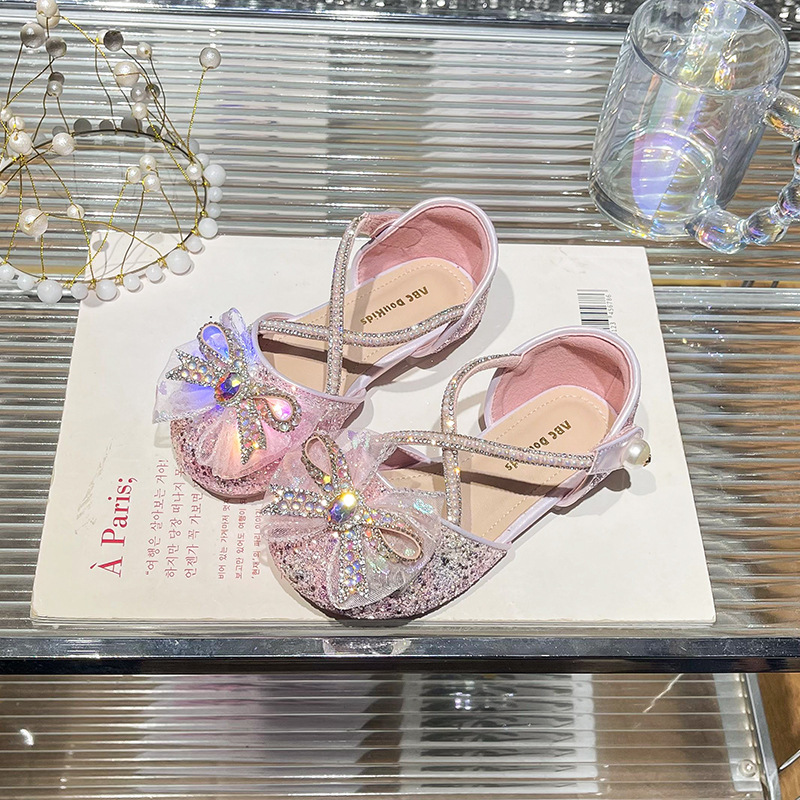 여아 발광 샌들 2026 여름 신상 여아용 리본 장식 앞코 덮개 샌들 어린이용 달콤한 라이트업 워터스톤 슈즈스토어 가기