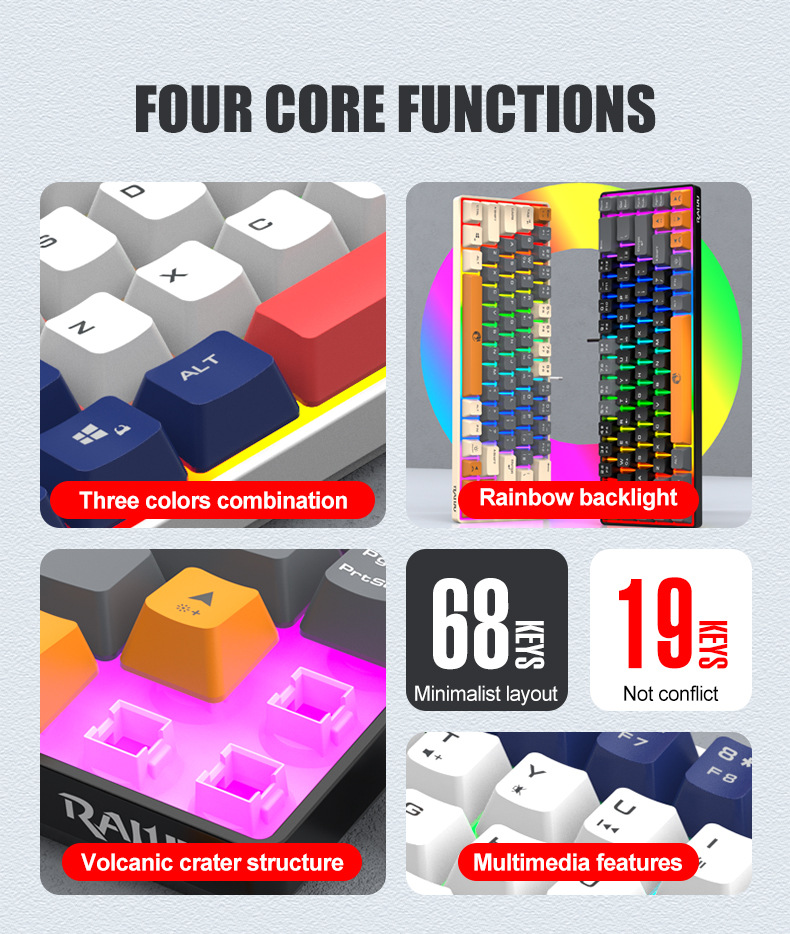 RAIKU Leikui K68 유선 키보드 3색 맞춤형 게임 발광 키보드 기계적 느낌 Amazon