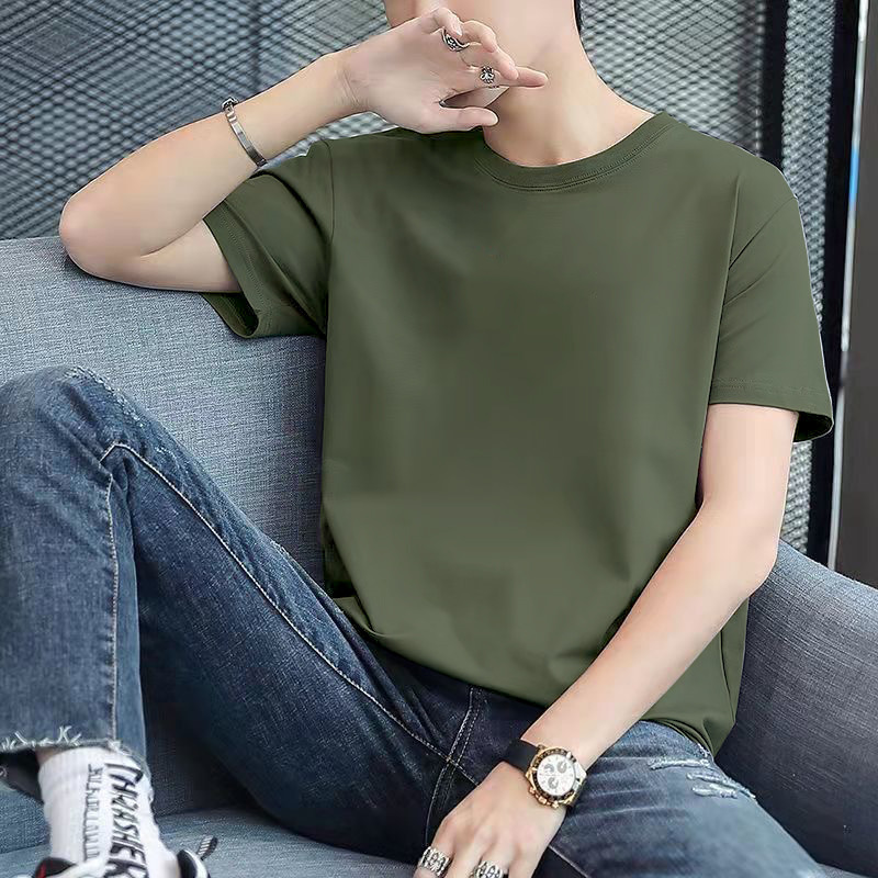 블랙 밀크 실크 티셔츠 남성용 스몰 라벨 반팔 여름 미국 패션 브랜드 7부 반팔 스몰 칼라 티셔츠 베이스 레이어스토어 가기