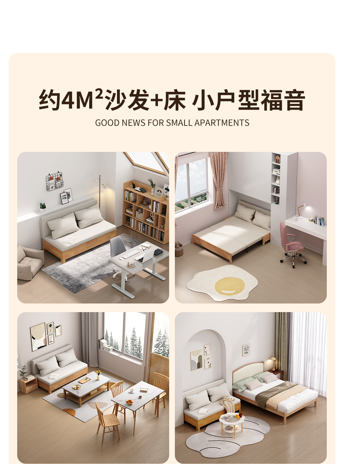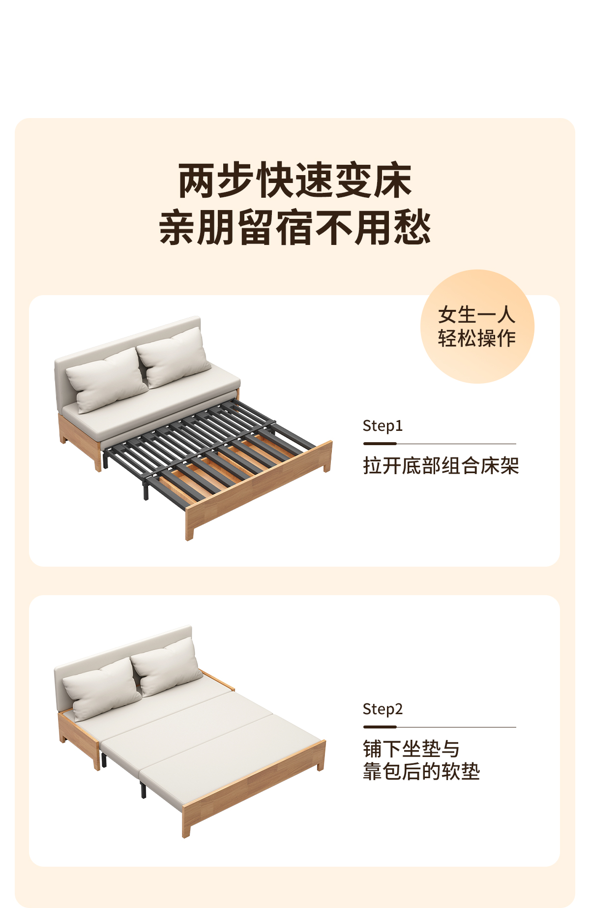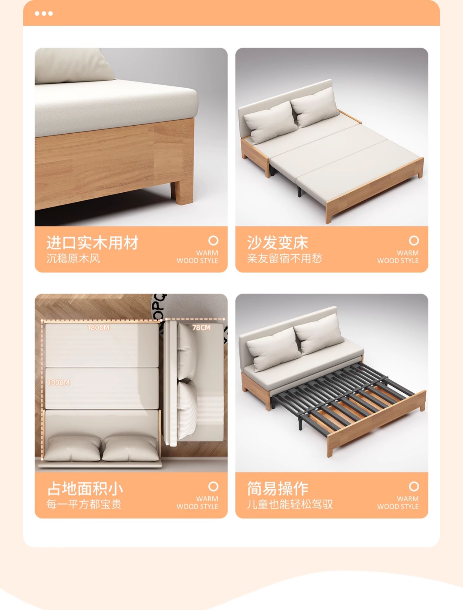 단단한 나무 소파 침대 다기능 이중 목적 접이식 침대 작은 아파트 거실 연구 개폐식 싱글 및 더블 새 소파스토어 가기