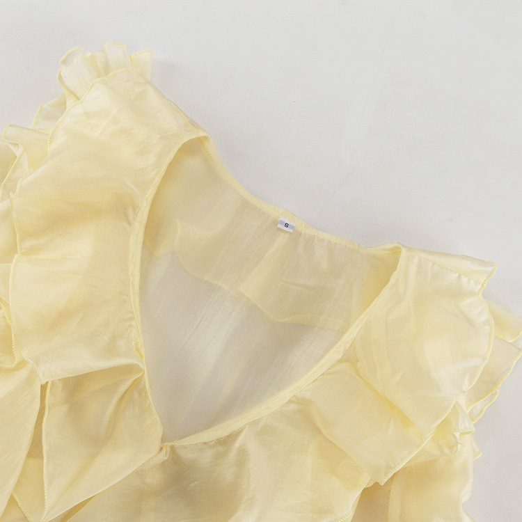 국경 간 패션 여성 의류 프릴 태양 보호 긴 소매 프렌치 셔츠 여름 새로운 캐주얼 디자인 쉬폰 탑스토어 가기