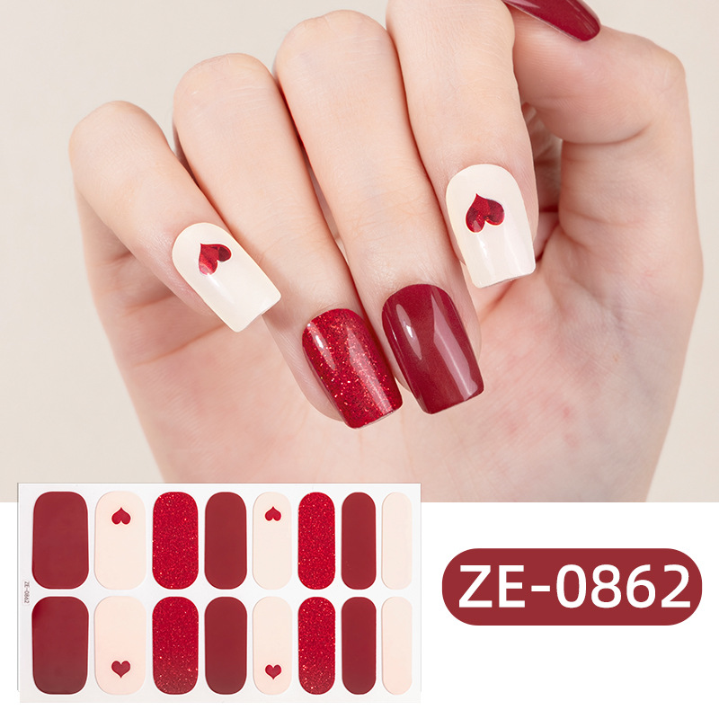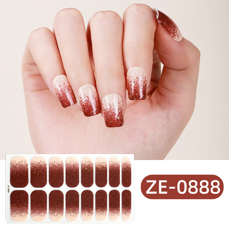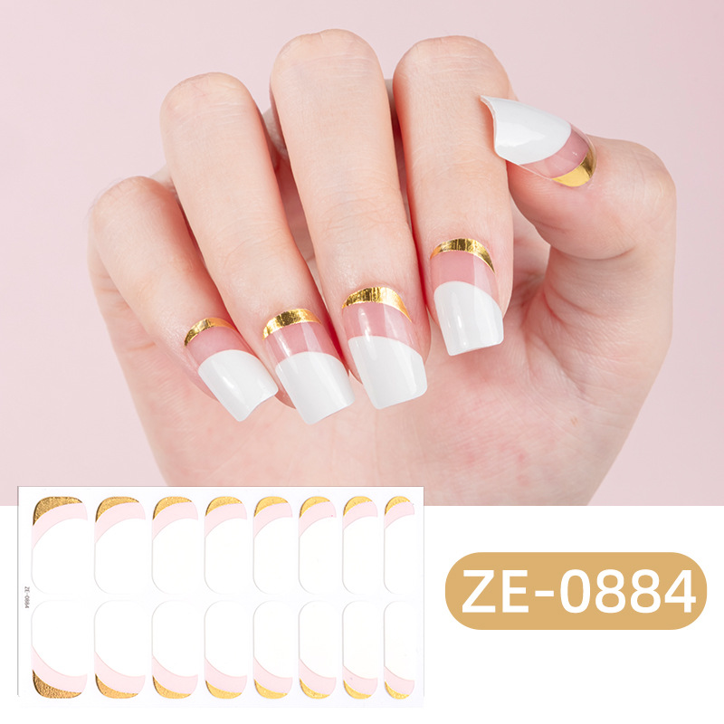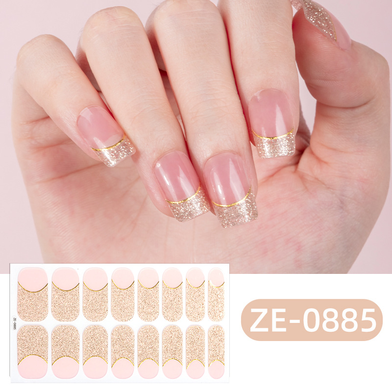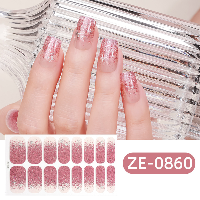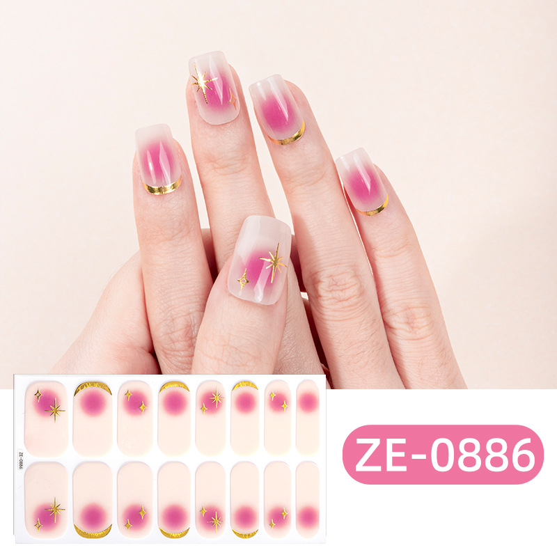 Zhengxiang의 새로운 그라디언트 양파 핑크 프렌치 매니큐어 필름 매니큐어 스티커 3D 핫 스탬핑 16 손가락 크로스 보더 temu 인기 네일 스티커스토어 가기