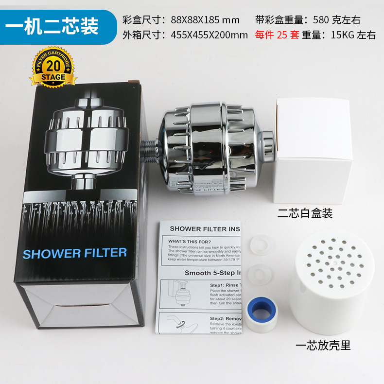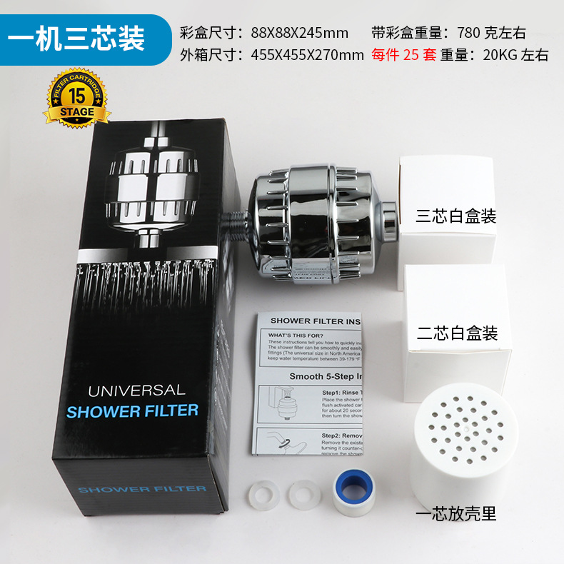 맞춤형 국경 간 10-25층 25단계 가정용 정수기 샤워 필터 세트 목욕 필터링 및 염소 제거