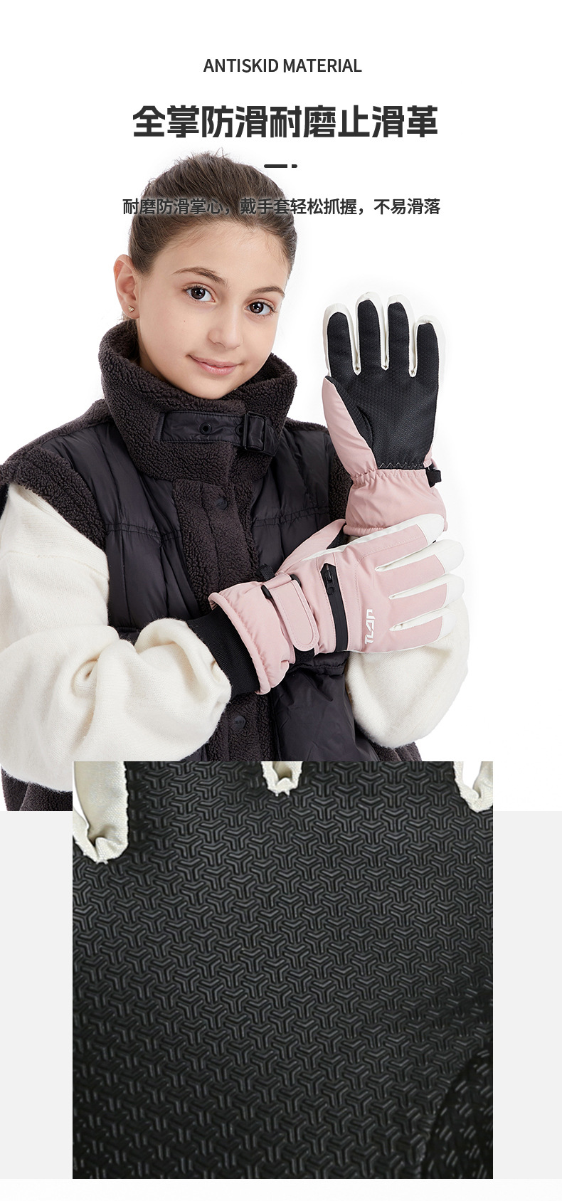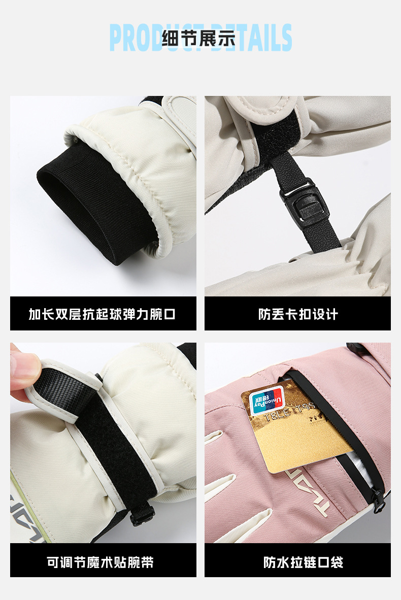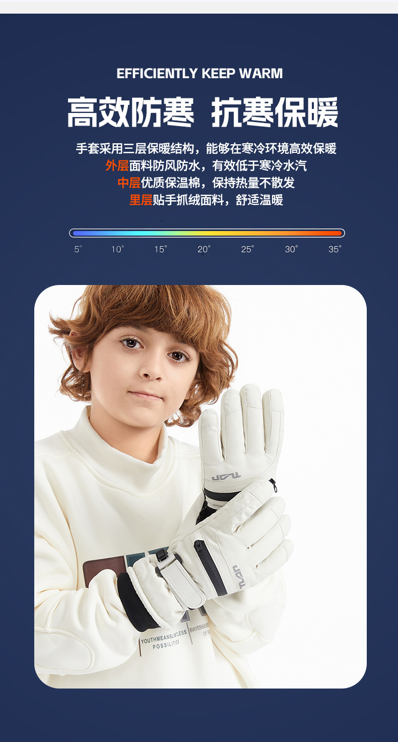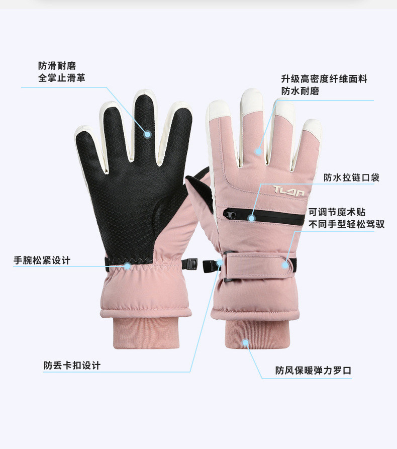 어린이용 가을 겨울 패션 스포츠 스키 장갑, 가족 모델, 벨벳 따뜻한 지퍼 포켓, 스노우 카드, 방풍 및 방수스토어 가기