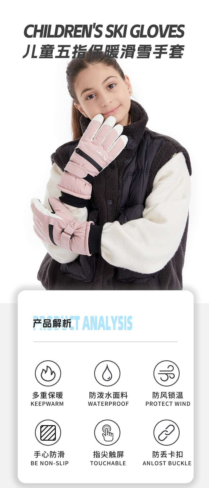 어린이용 가을 겨울 패션 스포츠 스키 장갑, 가족 모델, 벨벳 따뜻한 지퍼 포켓, 스노우 카드, 방풍 및 방수