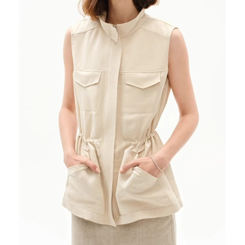 桑蚕丝亚麻立领无袖猎装马甲 新品休闲穿搭女