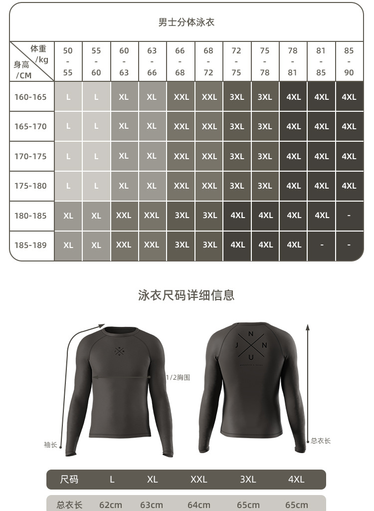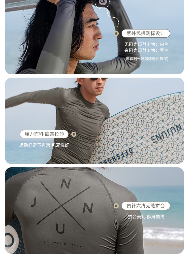 NUJUNE 수영복 남성용 긴팔 자외선 차단 잠수복 속건성 서핑 해파리 의류 스티치 탑 스노클링 수영복스토어 가기