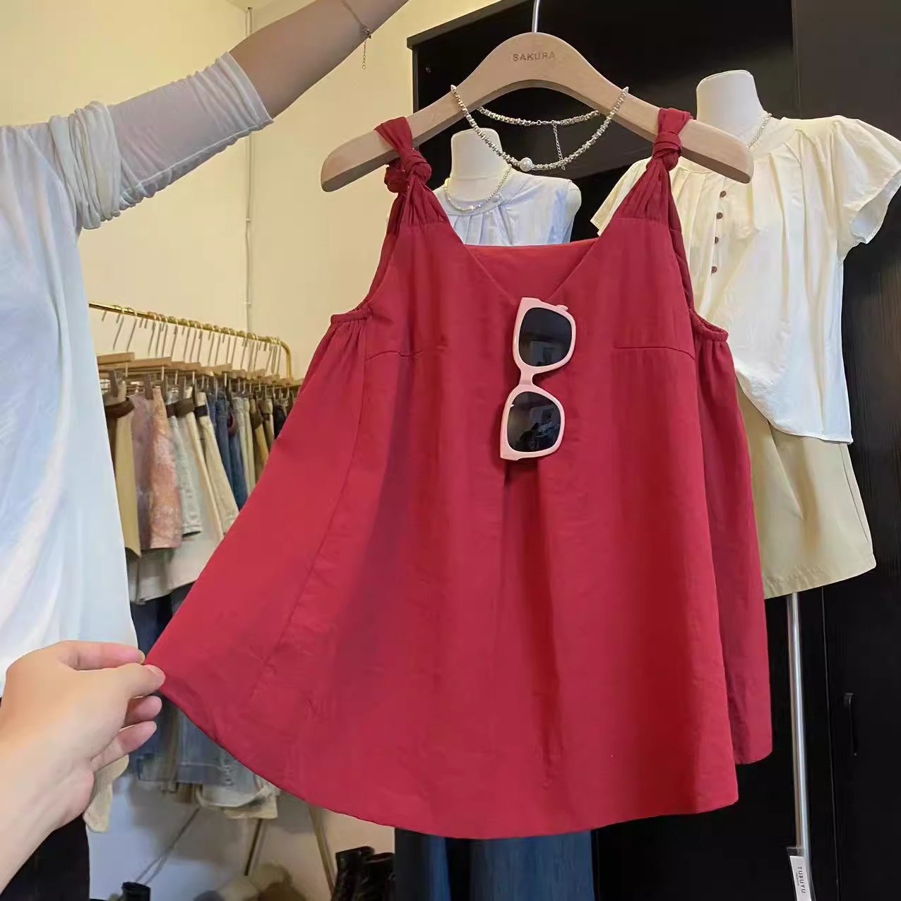 대외 무역 통관~ 브랜드 기질이 독특한 여성용 브이넥 트위스트 캐미솔, 루즈하고 슬림한 민소매 탑스토어 가기