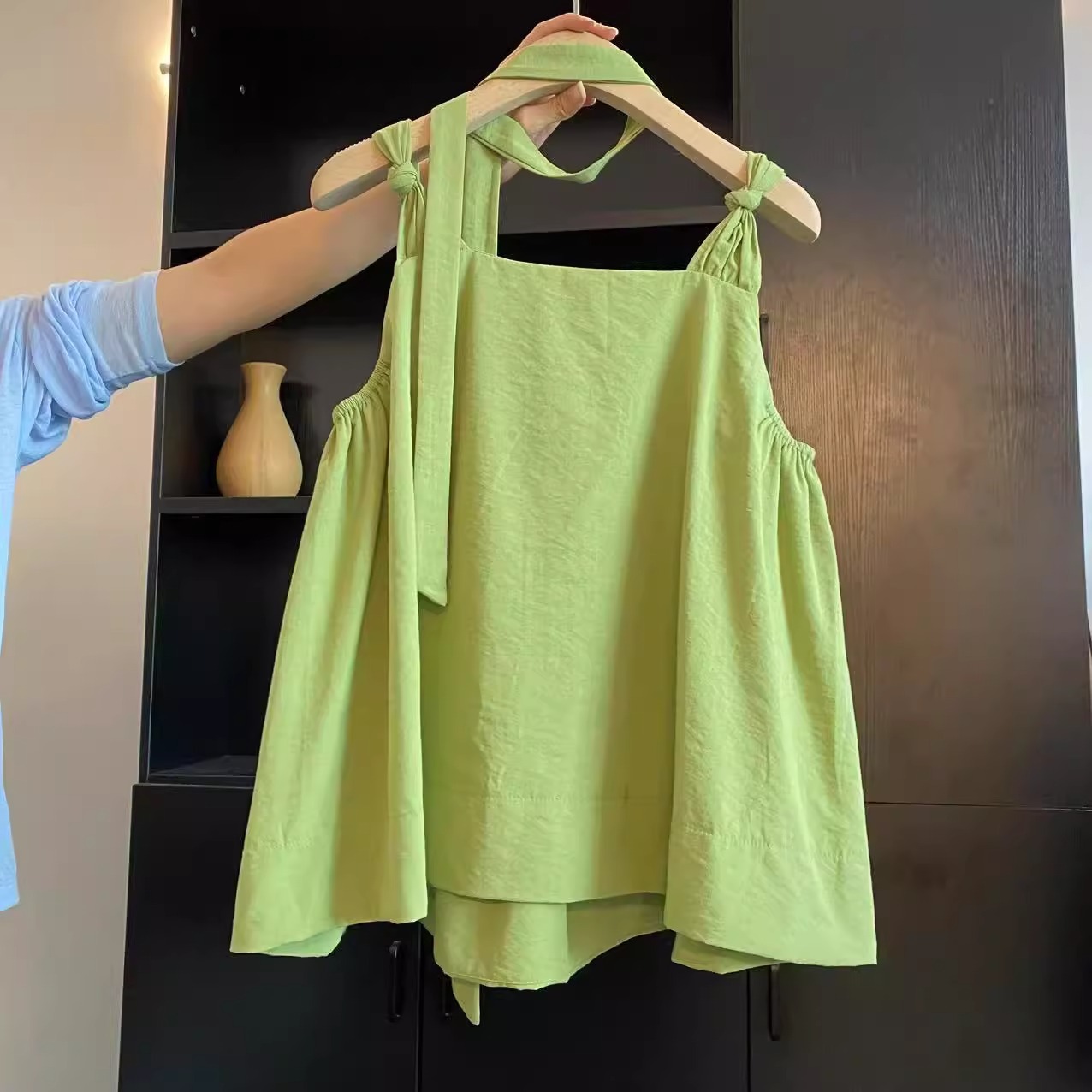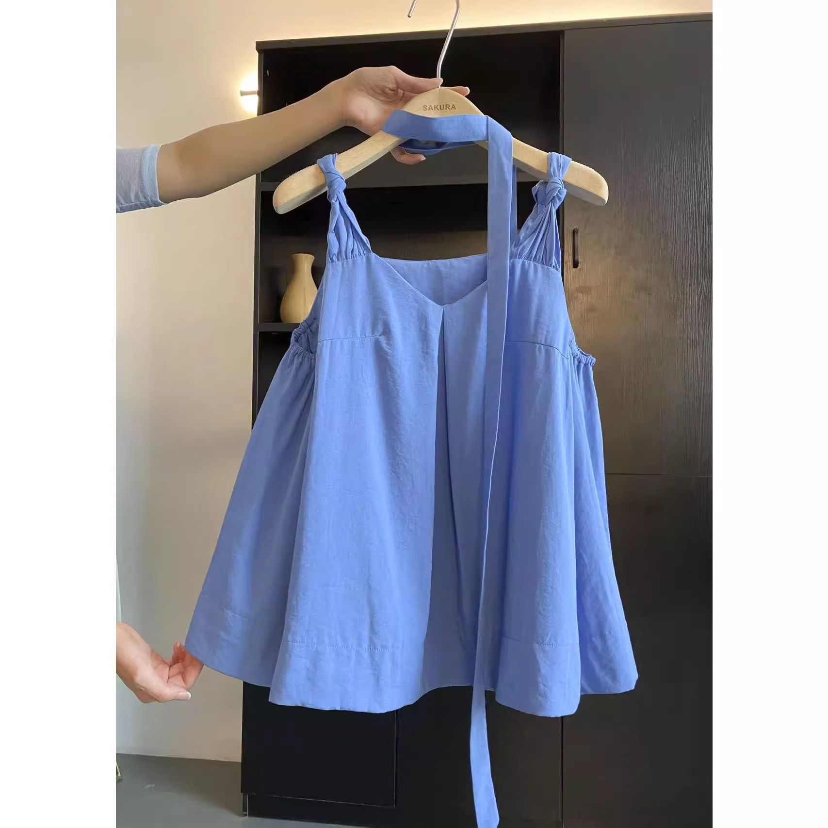 대외 무역 통관~ 브랜드 기질이 독특한 여성용 브이넥 트위스트 캐미솔, 루즈하고 슬림한 민소매 탑