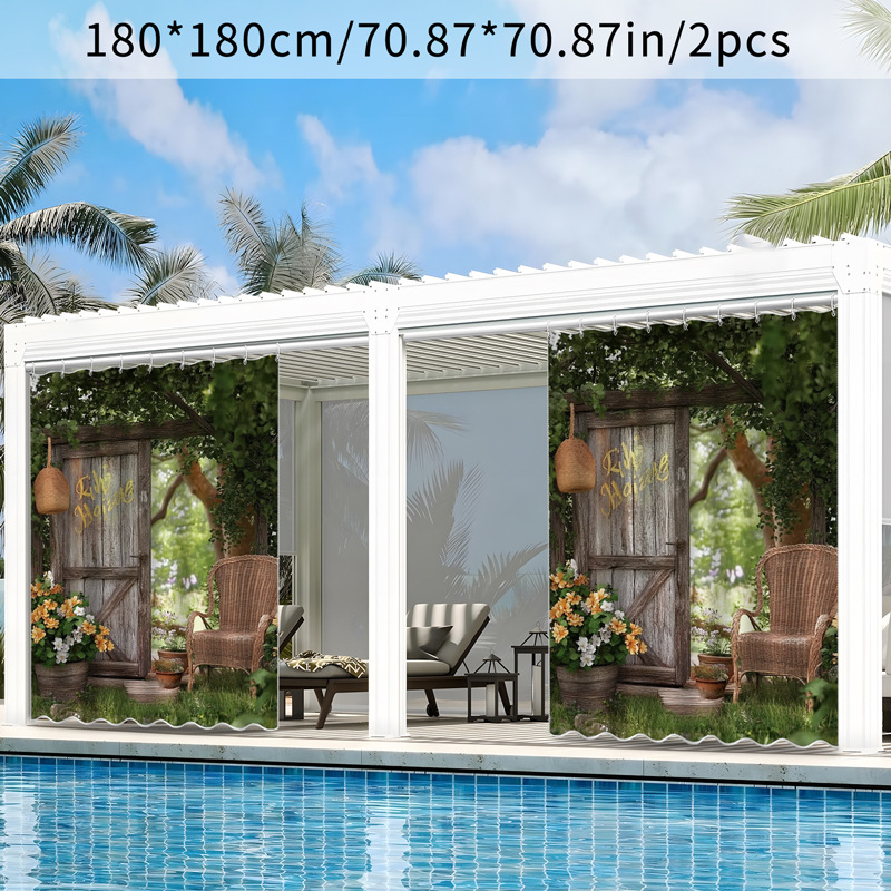 Amazon Xianghui Courtyard 국경 간 인기 판매 태양 보호 방수 커튼 디지털 인쇄 Dropshipping 후크 유형 야외 파빌리온