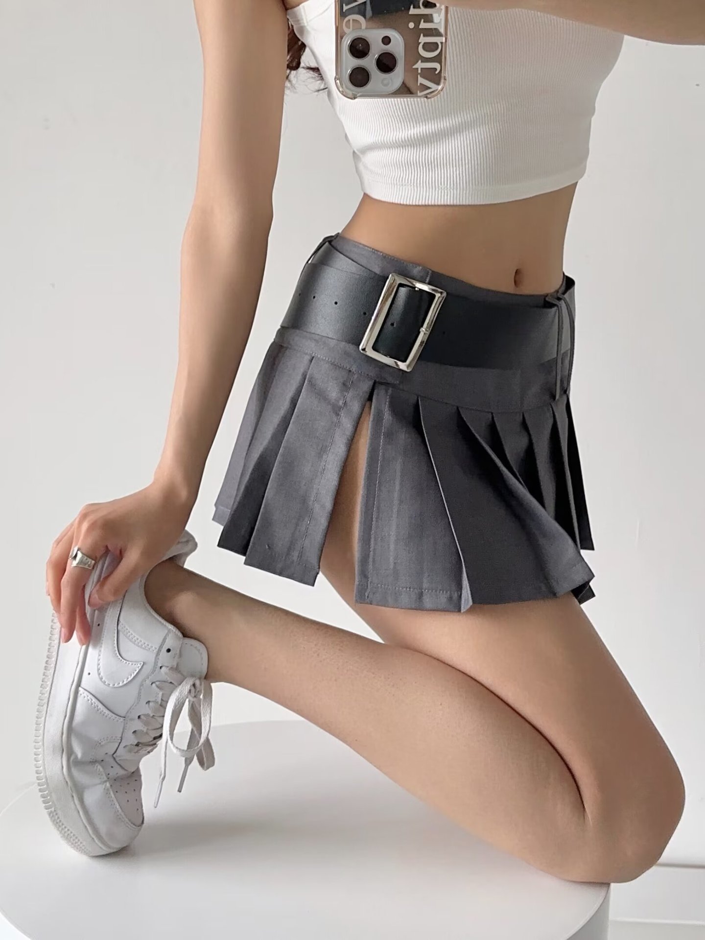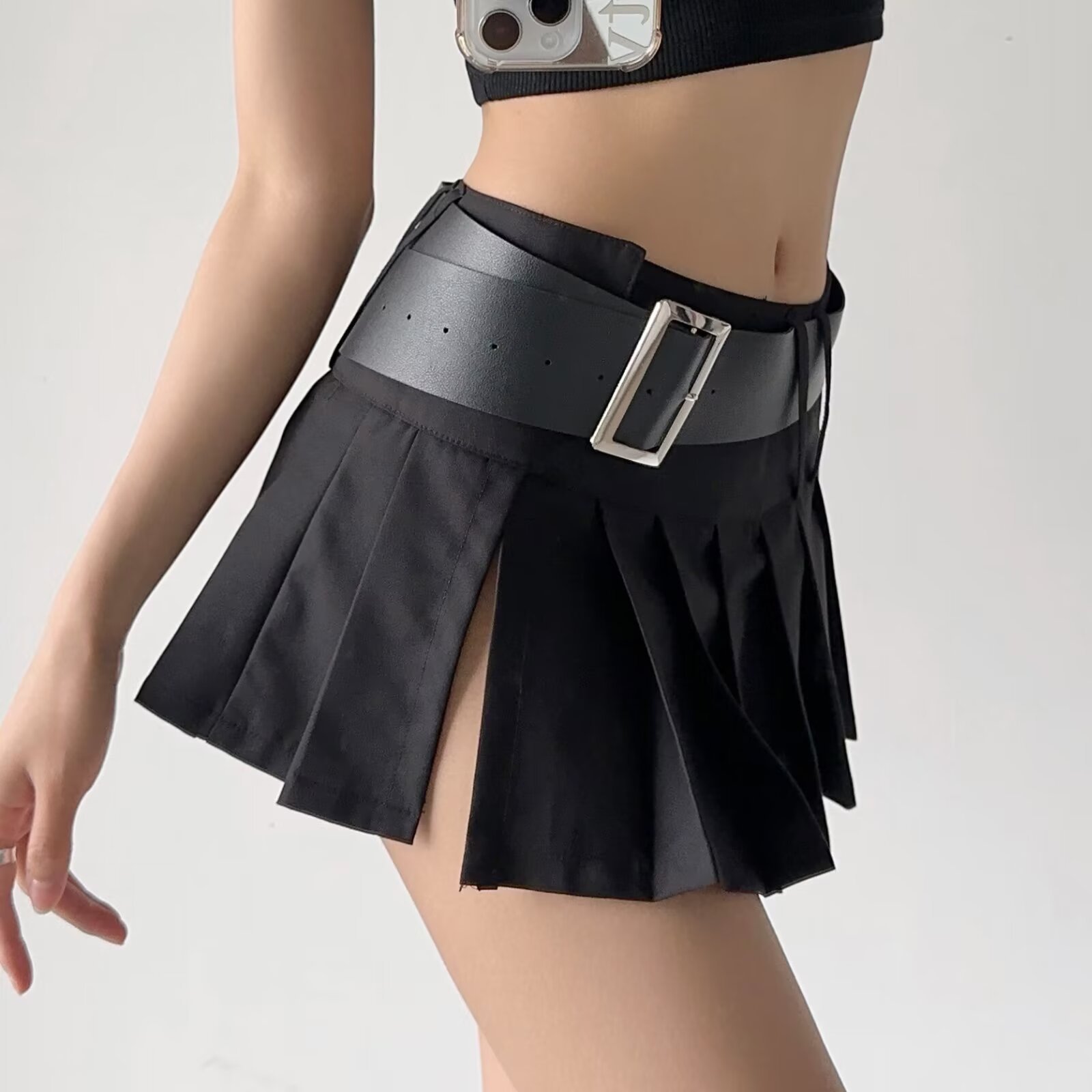 여름 미국식 jk 플리츠 스커트 섹시 로우 웨이스트 슬릿 a라인 핫걸 컬리지 스타일 슬림 슈트 하프 길이 초단지 우산