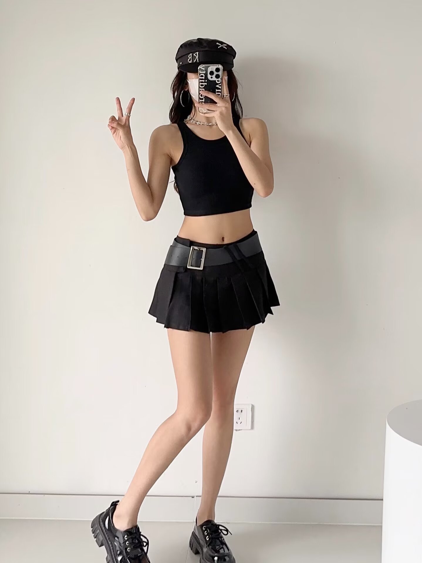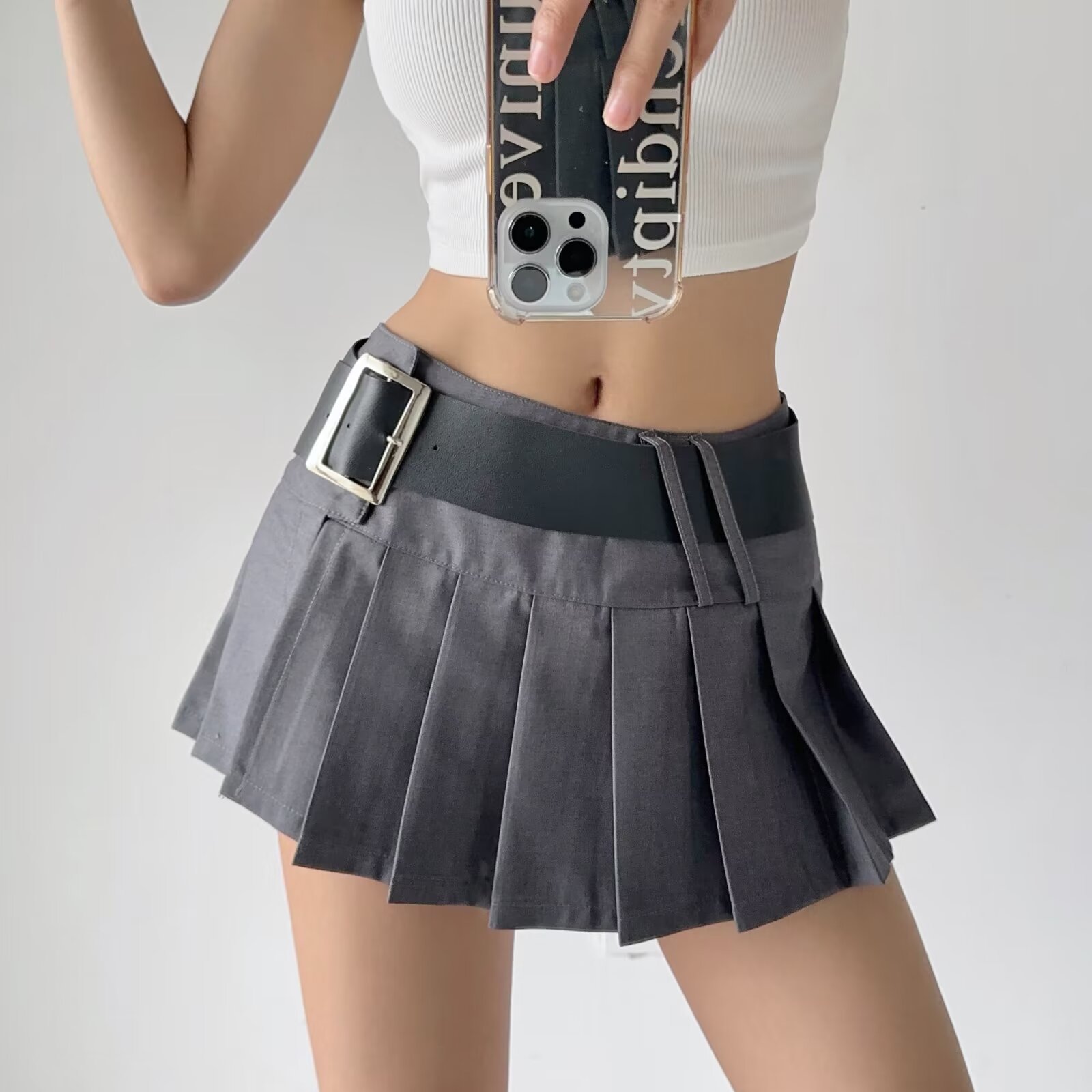 여름 미국식 jk 플리츠 스커트 섹시 로우 웨이스트 슬릿 a라인 핫걸 컬리지 스타일 슬림 슈트 하프 길이 초단지 우산스토어 가기