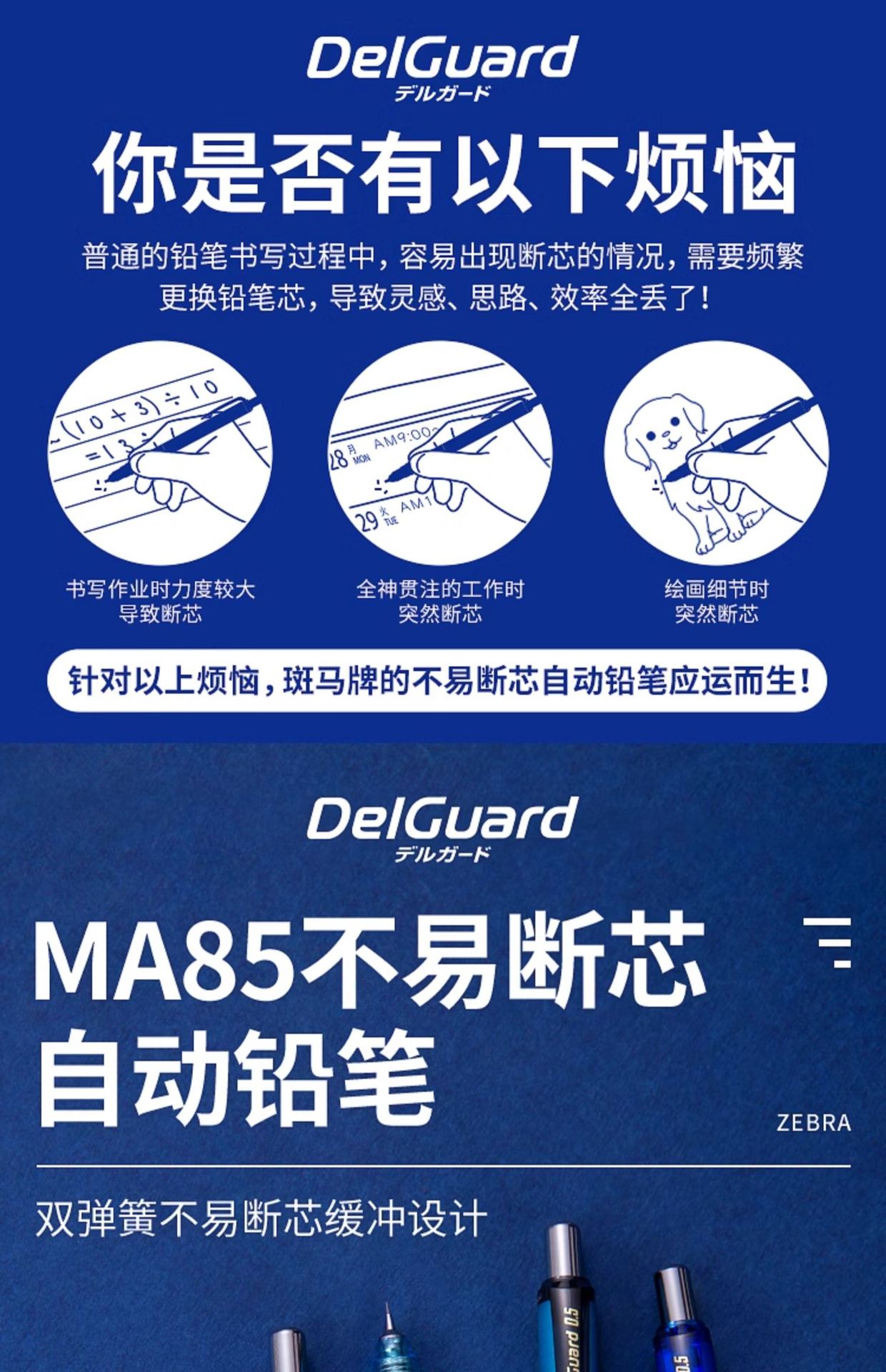 ZEBRA/얼룩말 자동 연필 MA85 학생 0.5mm 필기 연필 0.7mm 그리기 사무실 필기 연필