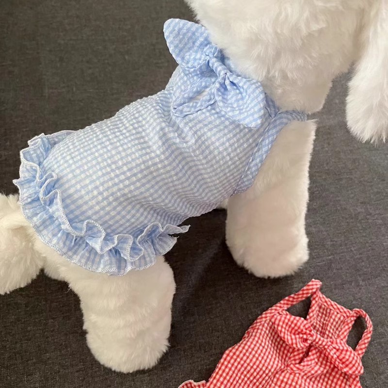 여름 얇은 통기성 개 공주 스타일 서스펜더 스커트 테디 비숑 포메라니안 슈나우저 애완 동물 옷 여름스토어 가기