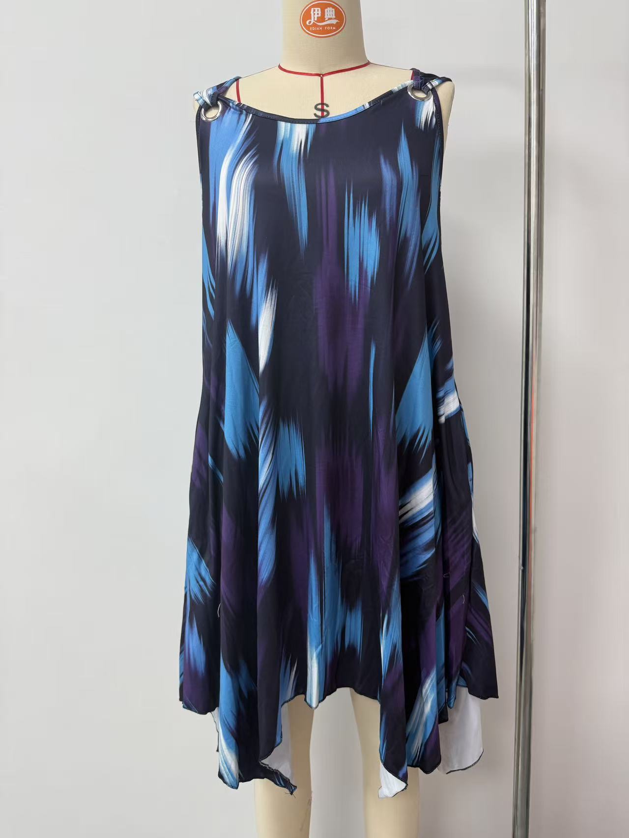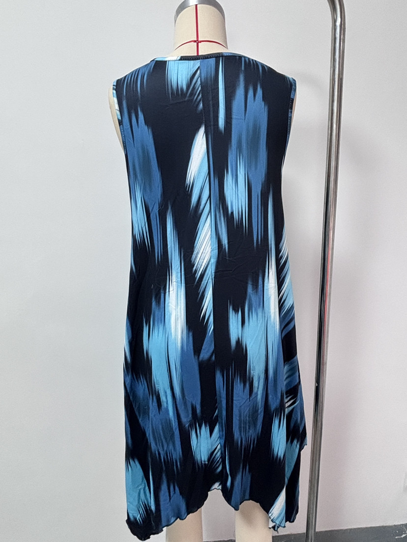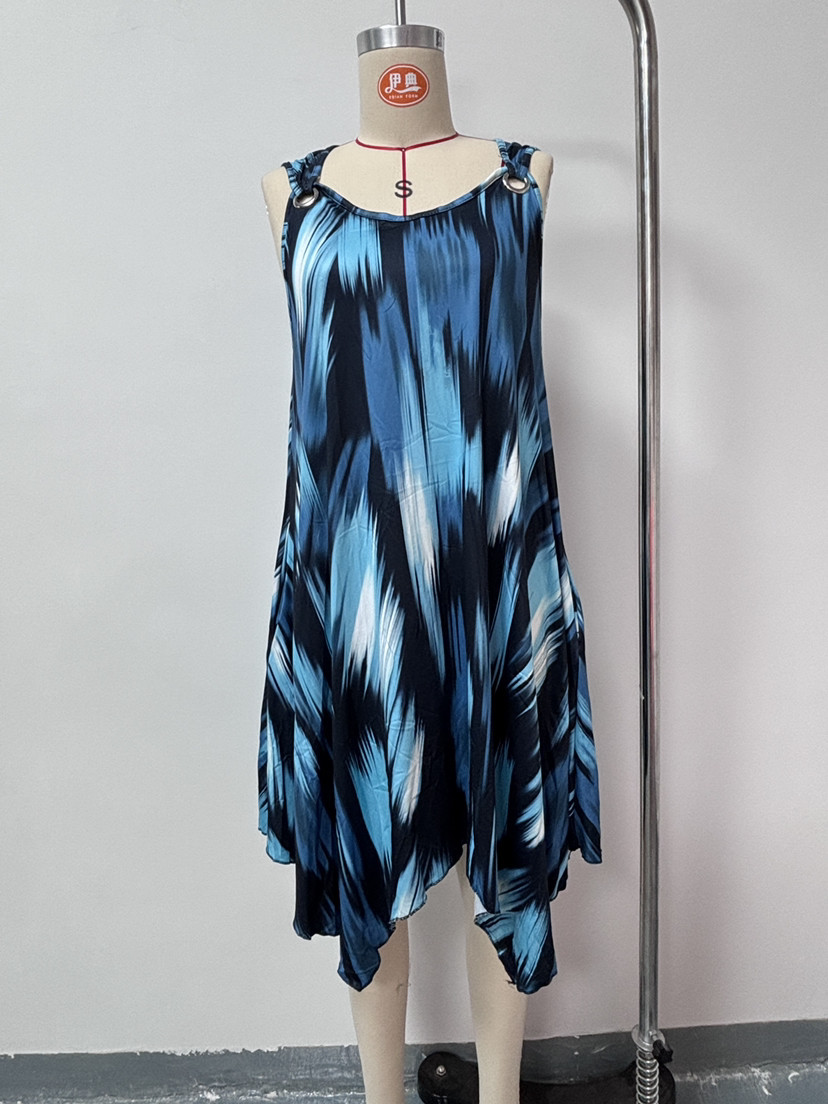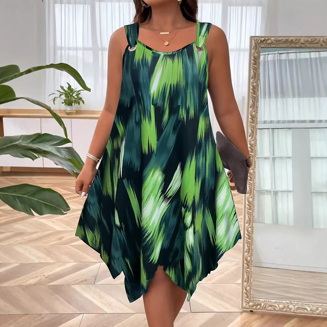 유럽과 미국 여성복 봄 여름 패션 우아한 그라데이션 프린트 민소매 원피스