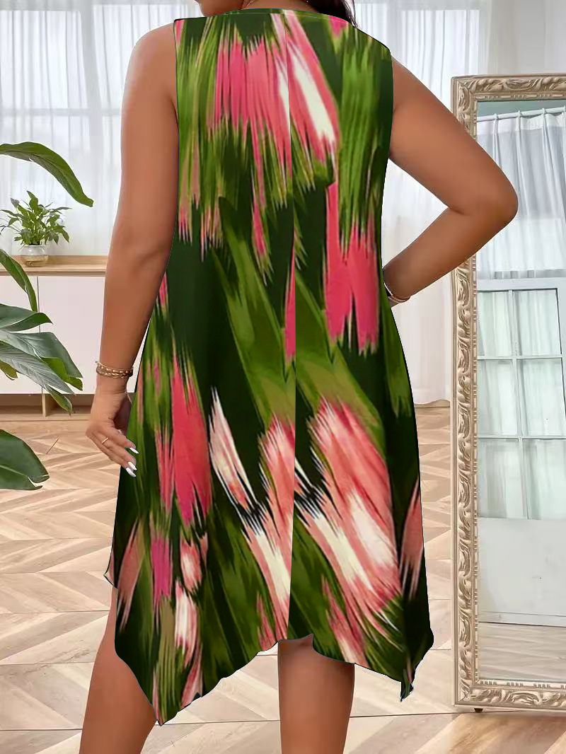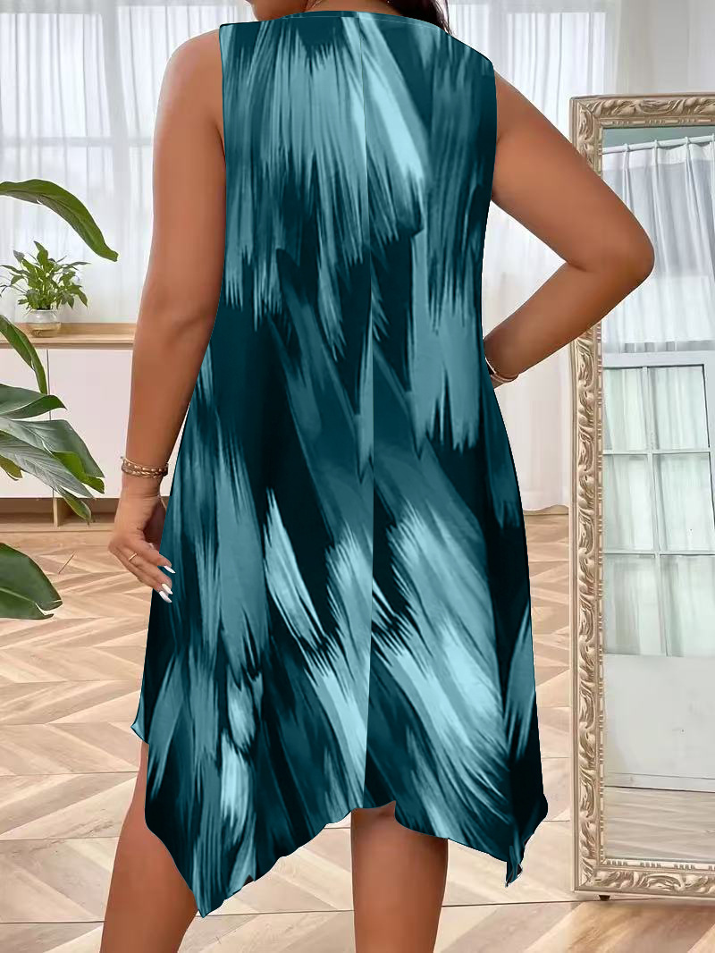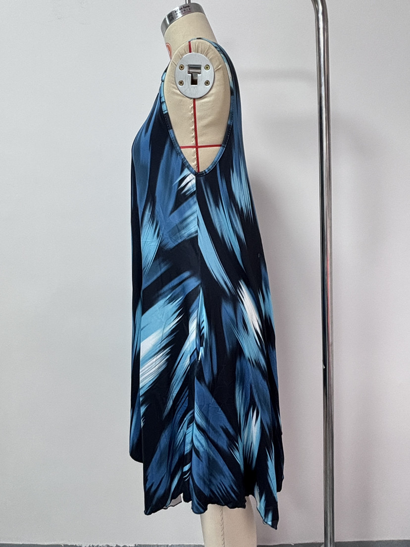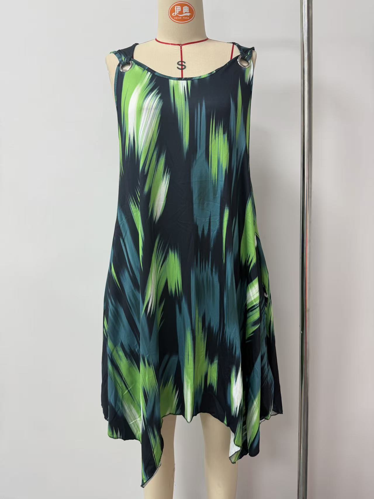 유럽과 미국 여성복 봄 여름 패션 우아한 그라데이션 프린트 민소매 원피스
