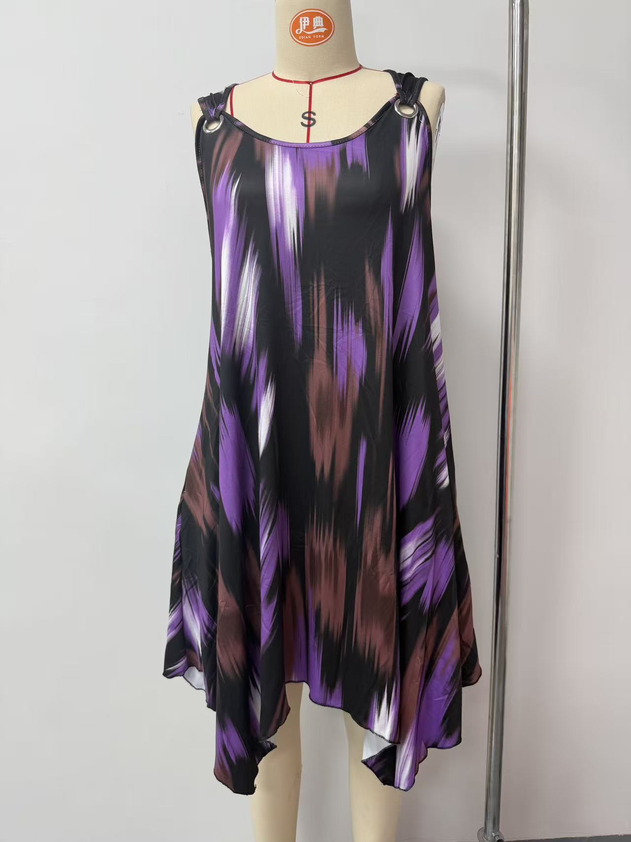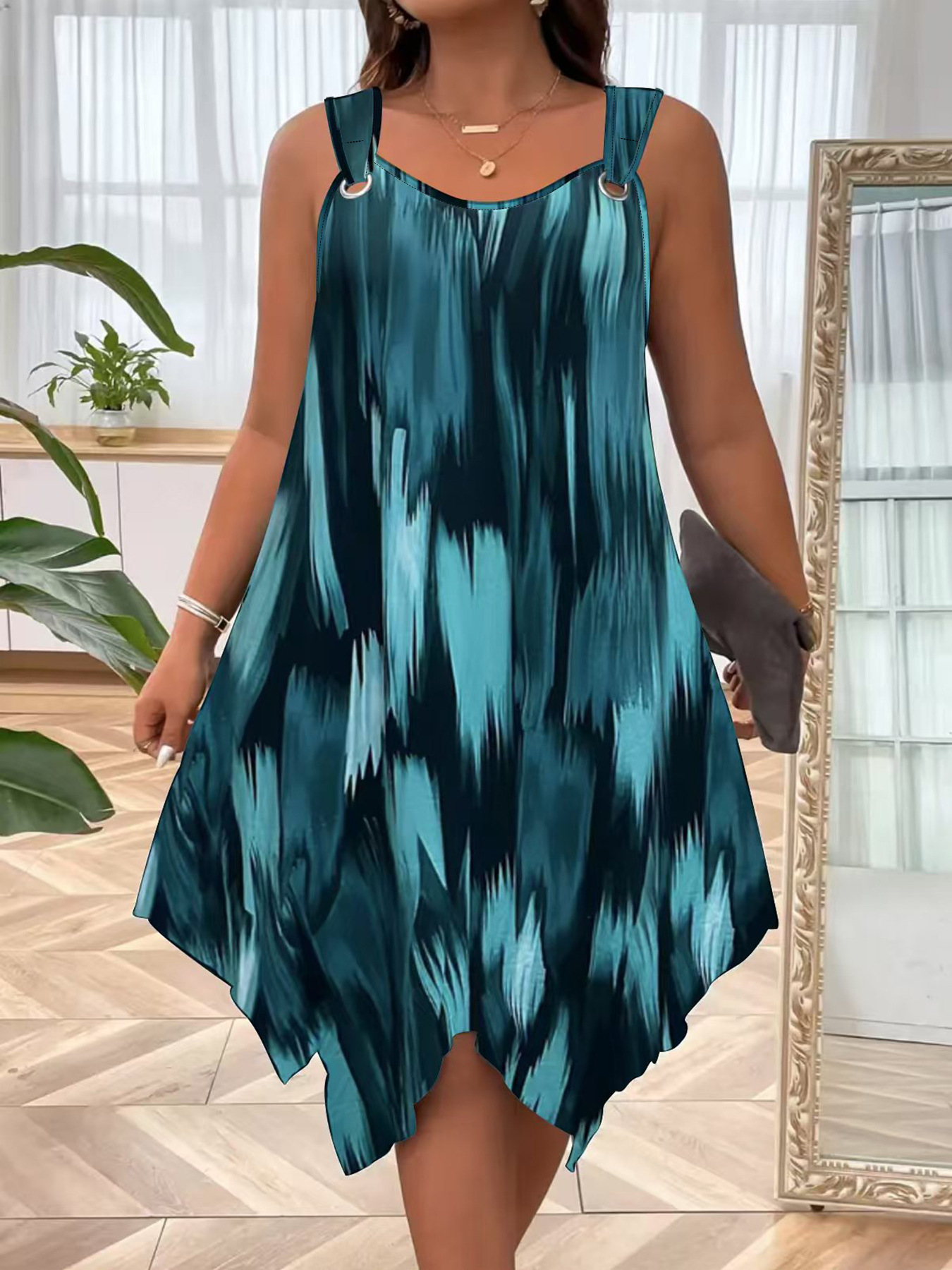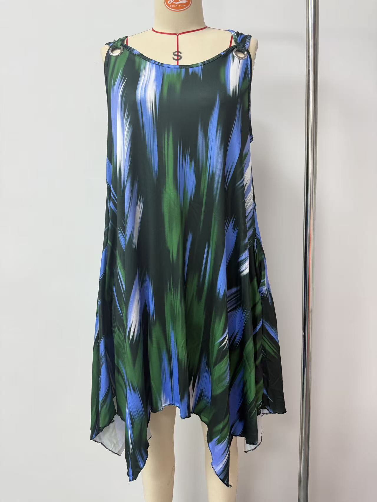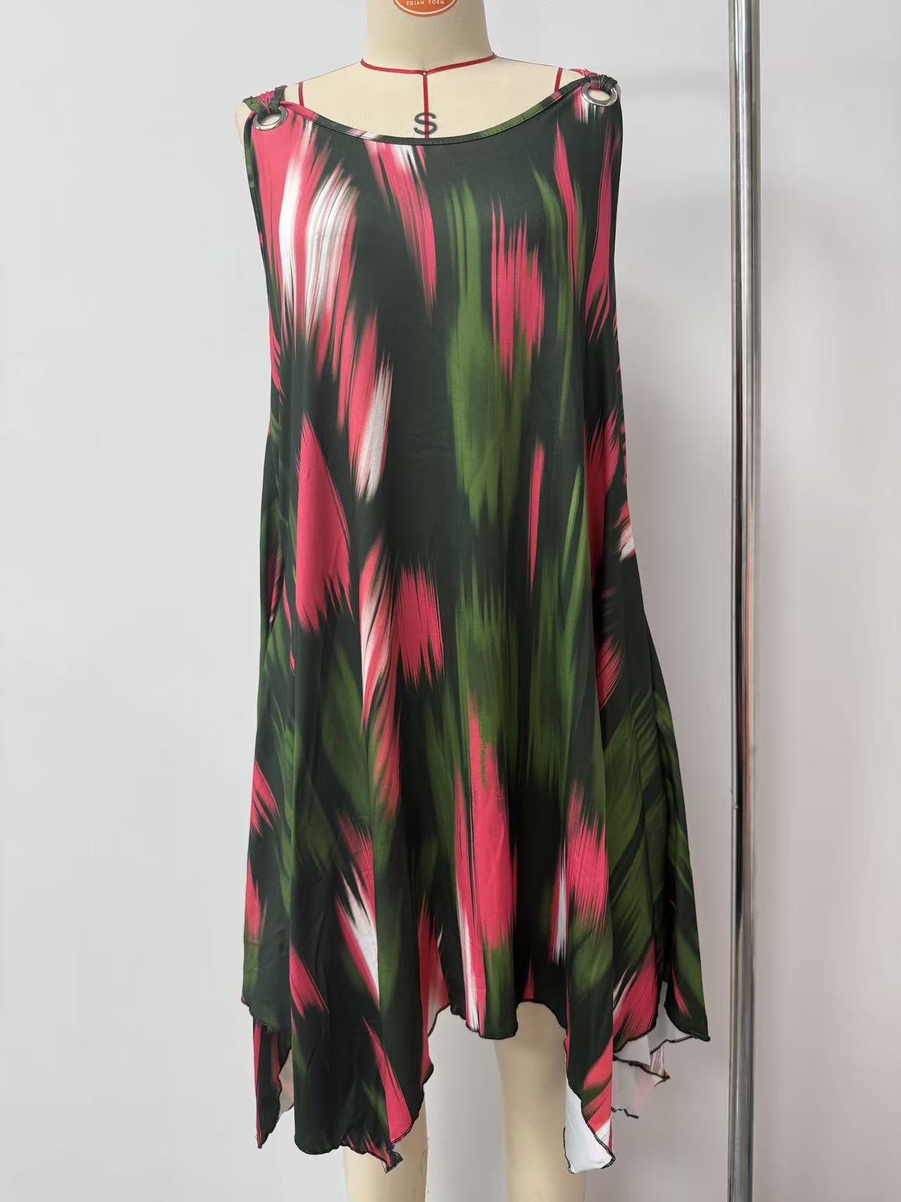 유럽과 미국 여성복 봄 여름 패션 우아한 그라데이션 프린트 민소매 원피스