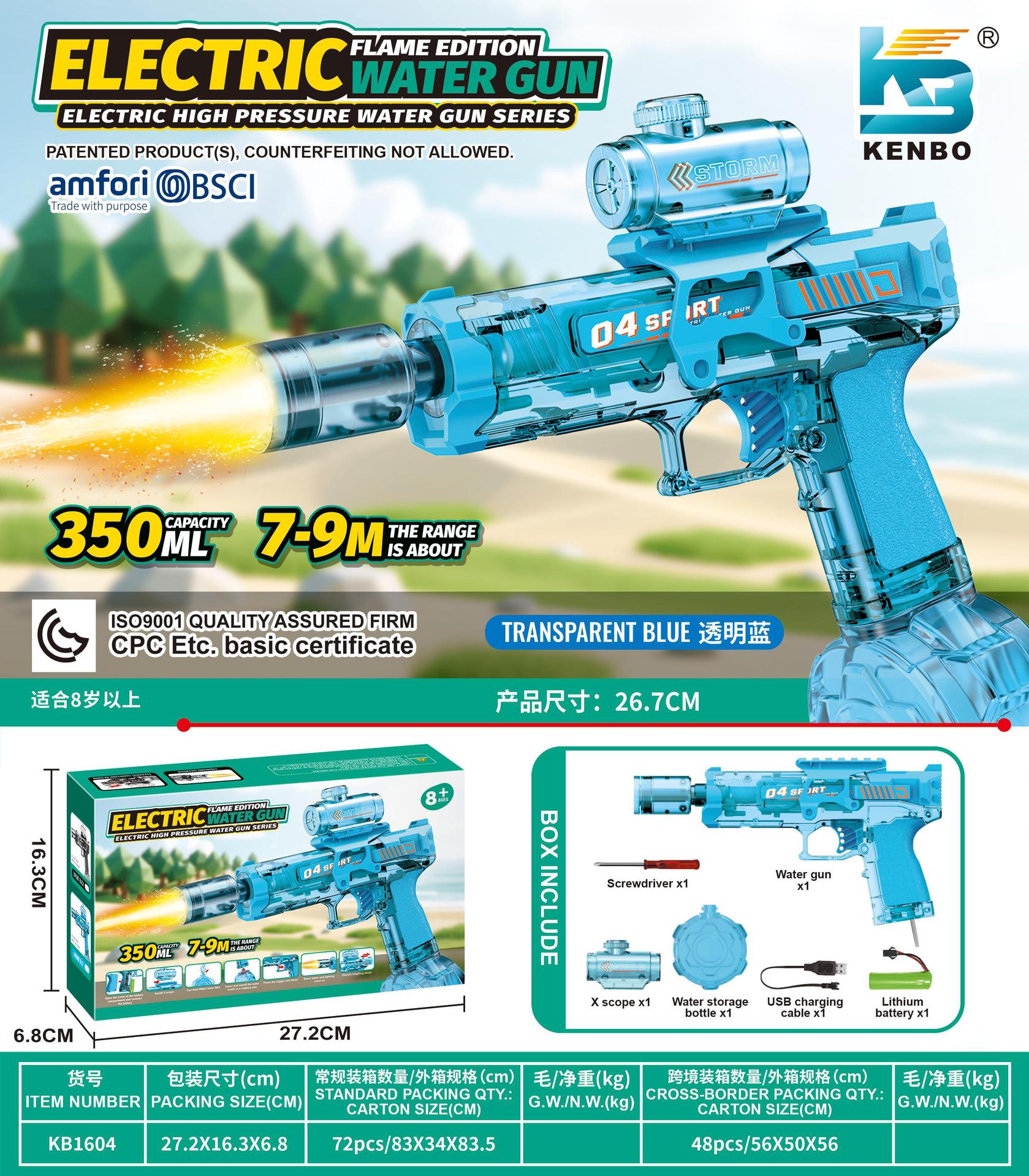 국경 간 영어 전기 버스트 얼음 쥐 물총 다채로운 조명 해변 야외 여름 어린이 물총 장난감