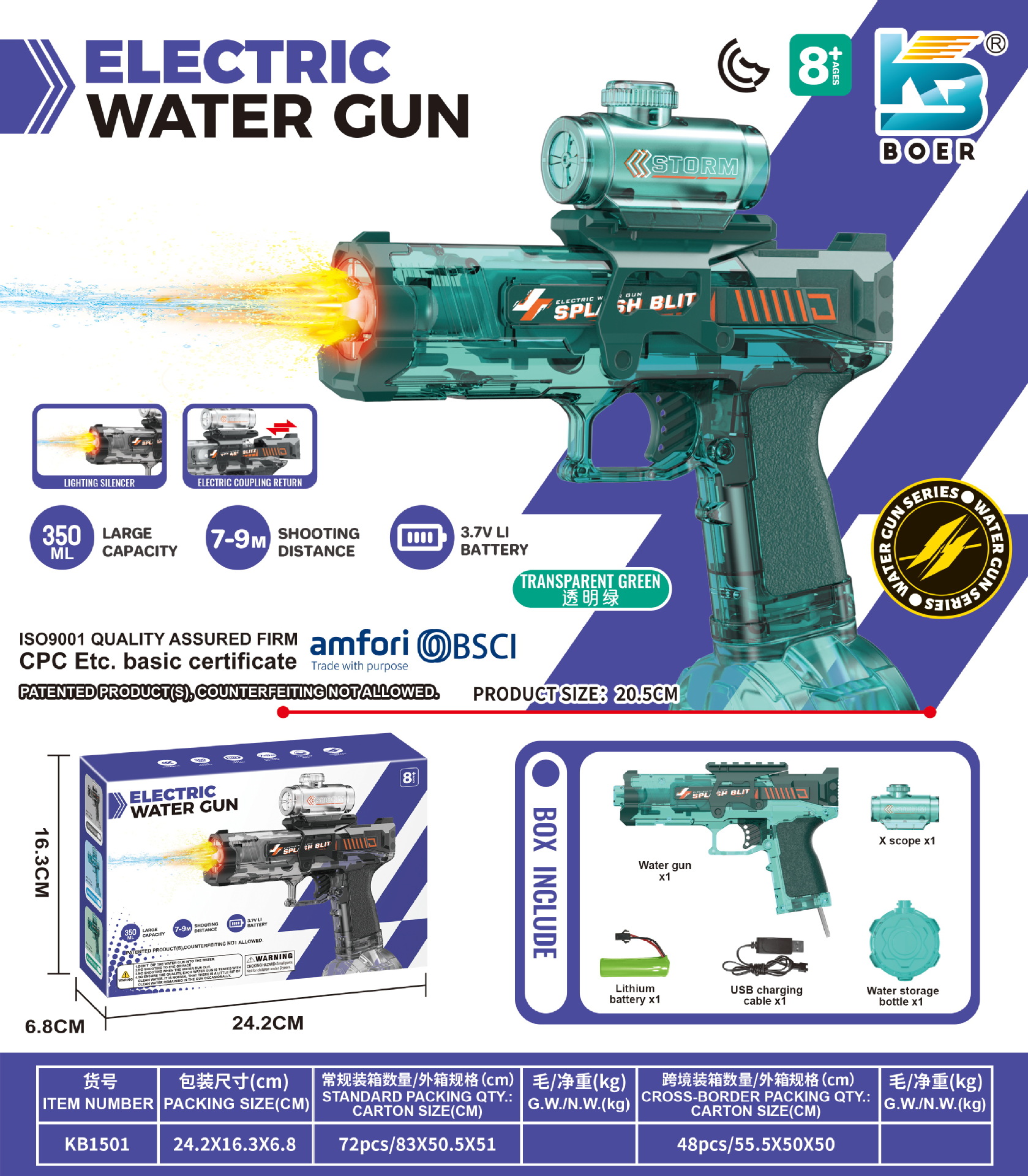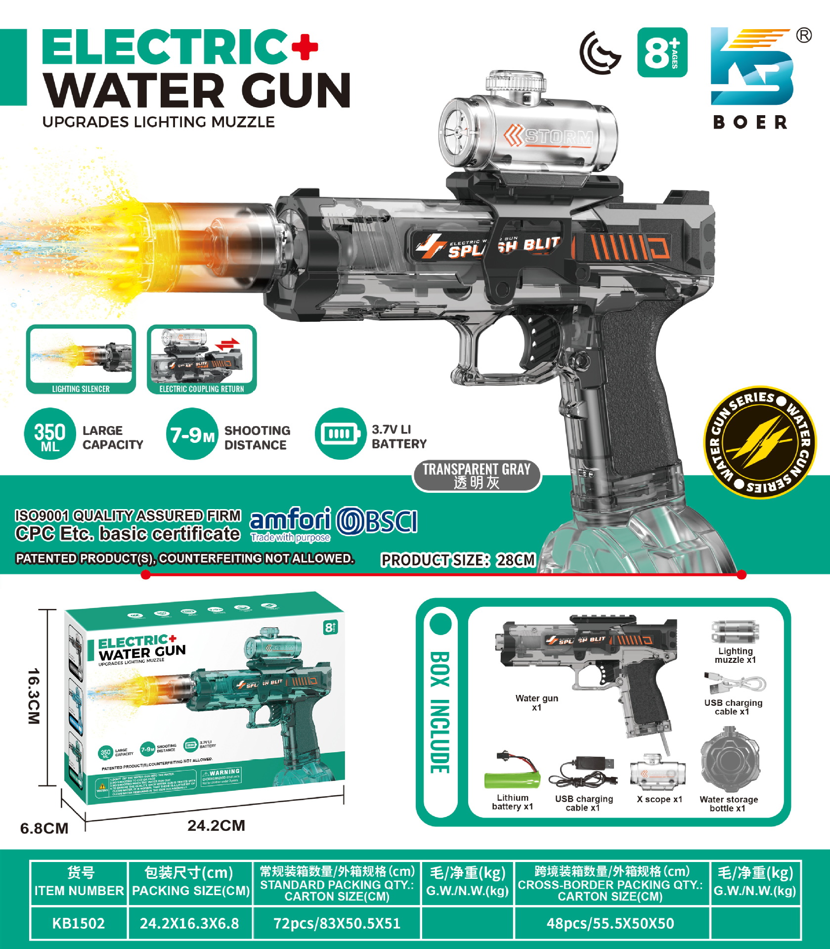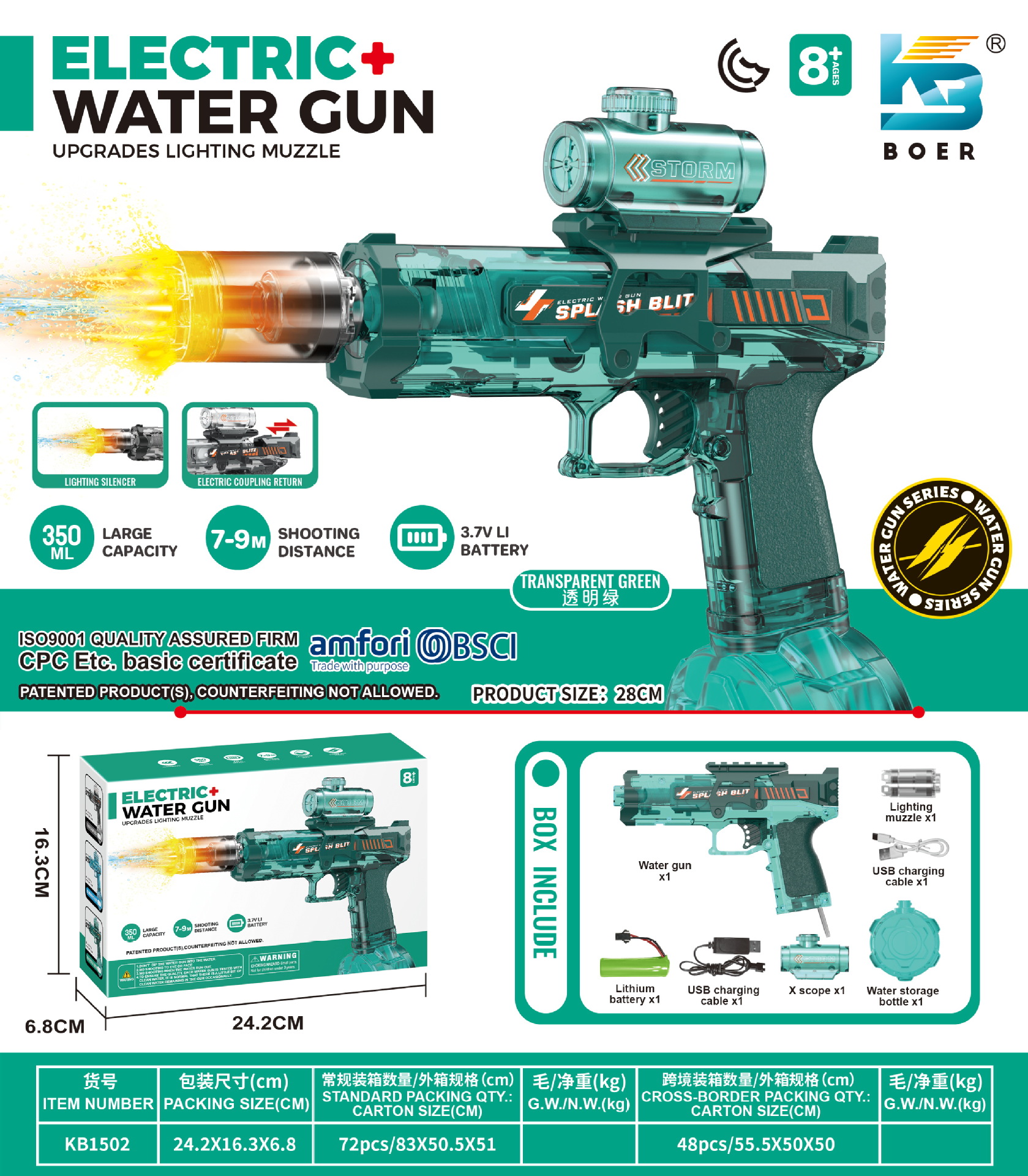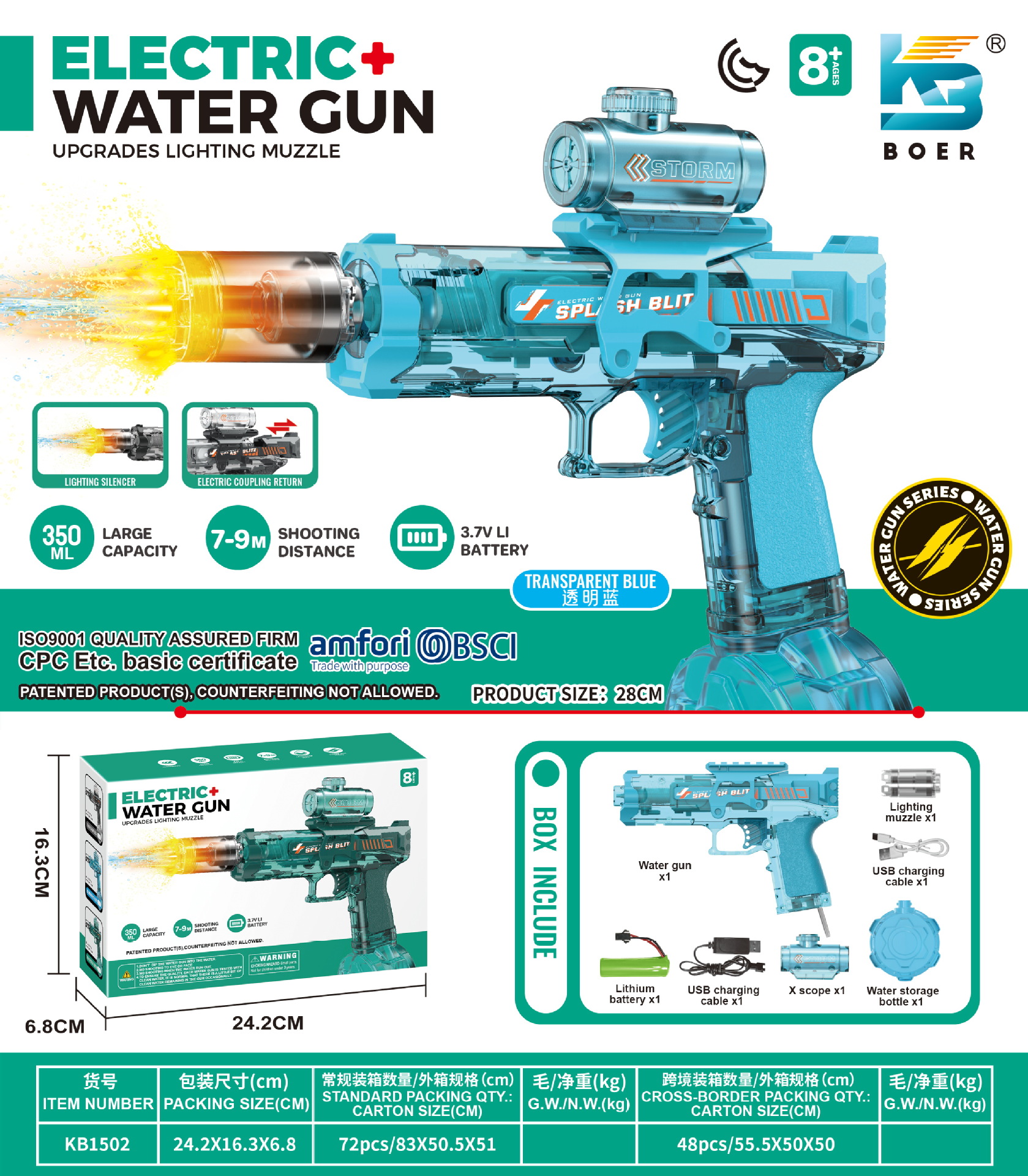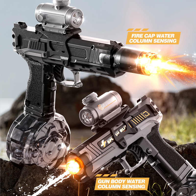 국경 간 영어 전기 버스트 얼음 쥐 물총 다채로운 조명 해변 야외 여름 어린이 물총 장난감스토어 가기