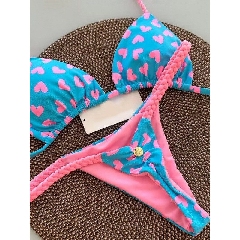 2024 유럽과 미국의 멀티 컬러 프린트 스트랩 스플릿 수영복 브라질 섹시한 끈 팬티 비키니 비키니 크로스 보더