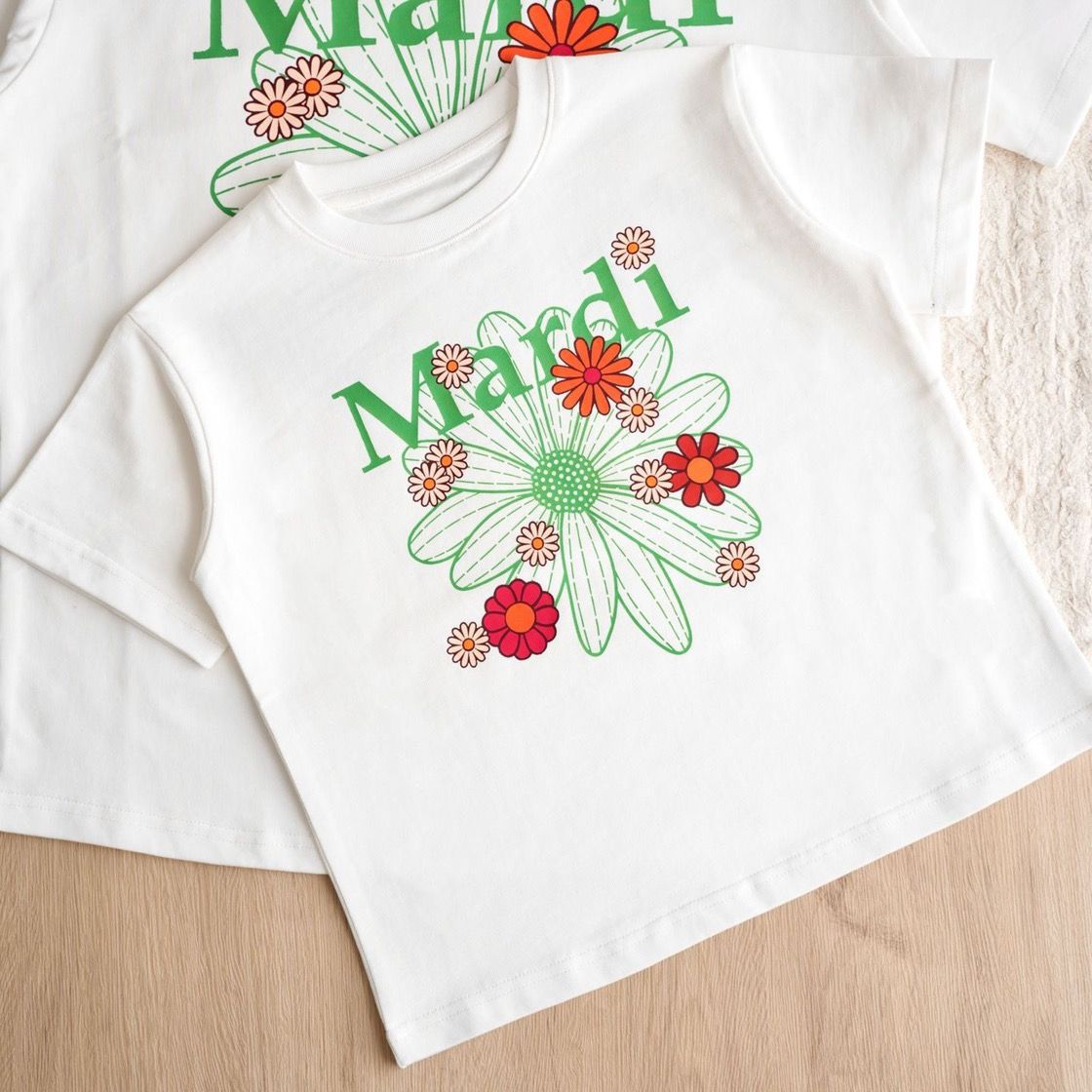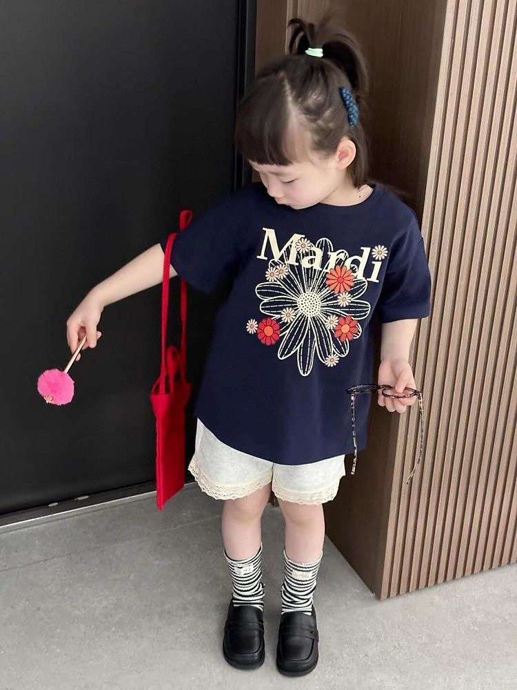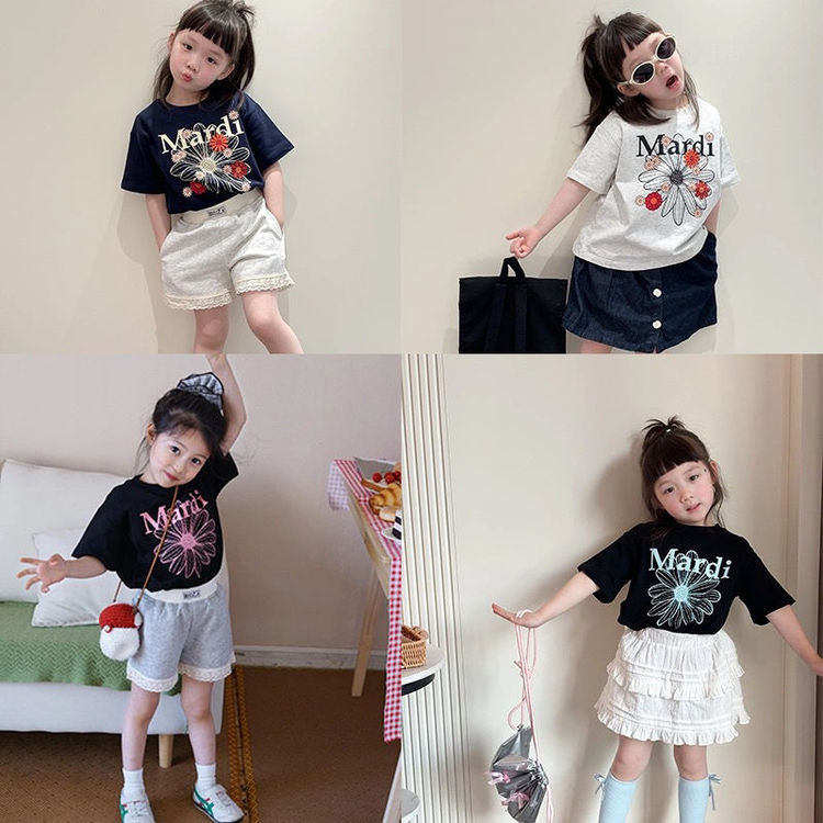 아동복 여아 2025 신상 반팔 티셔츠 패셔너블한 여아 아동 마디 데이지 블루 예쁜 여아용