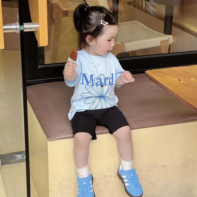 아동복 여아 2025 신상 반팔 티셔츠 패셔너블한 여아 아동 마디 데이지 블루 예쁜 여아용스토어 가기