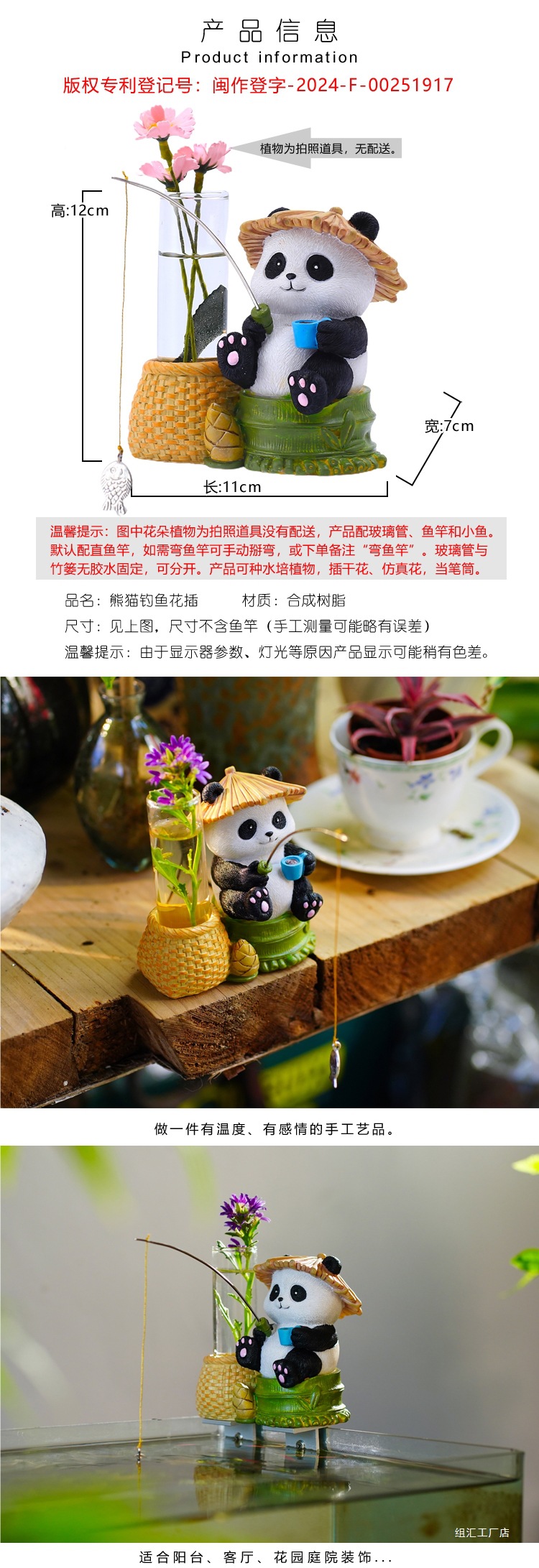 • 팬더 낚시 작은 꽃병 (식물 없음)