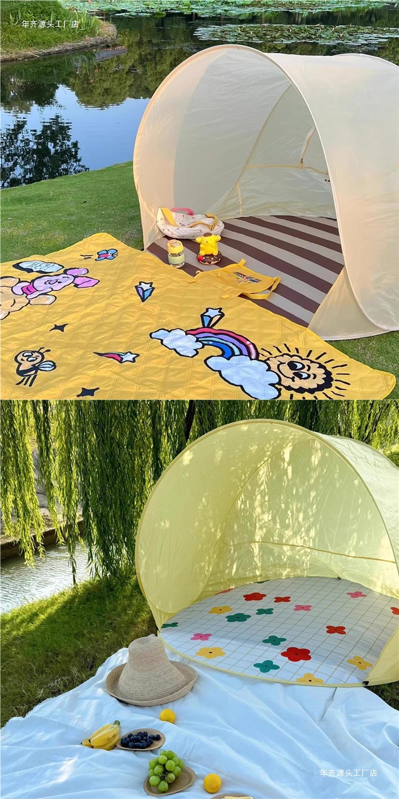 야외 캠핑 텐트, 원클릭 개폐, 휴대용 접이식 자외선 차단 및 비 방지 어린이 봄 나들이 장비, 해변 게임 하우스스토어 가기
