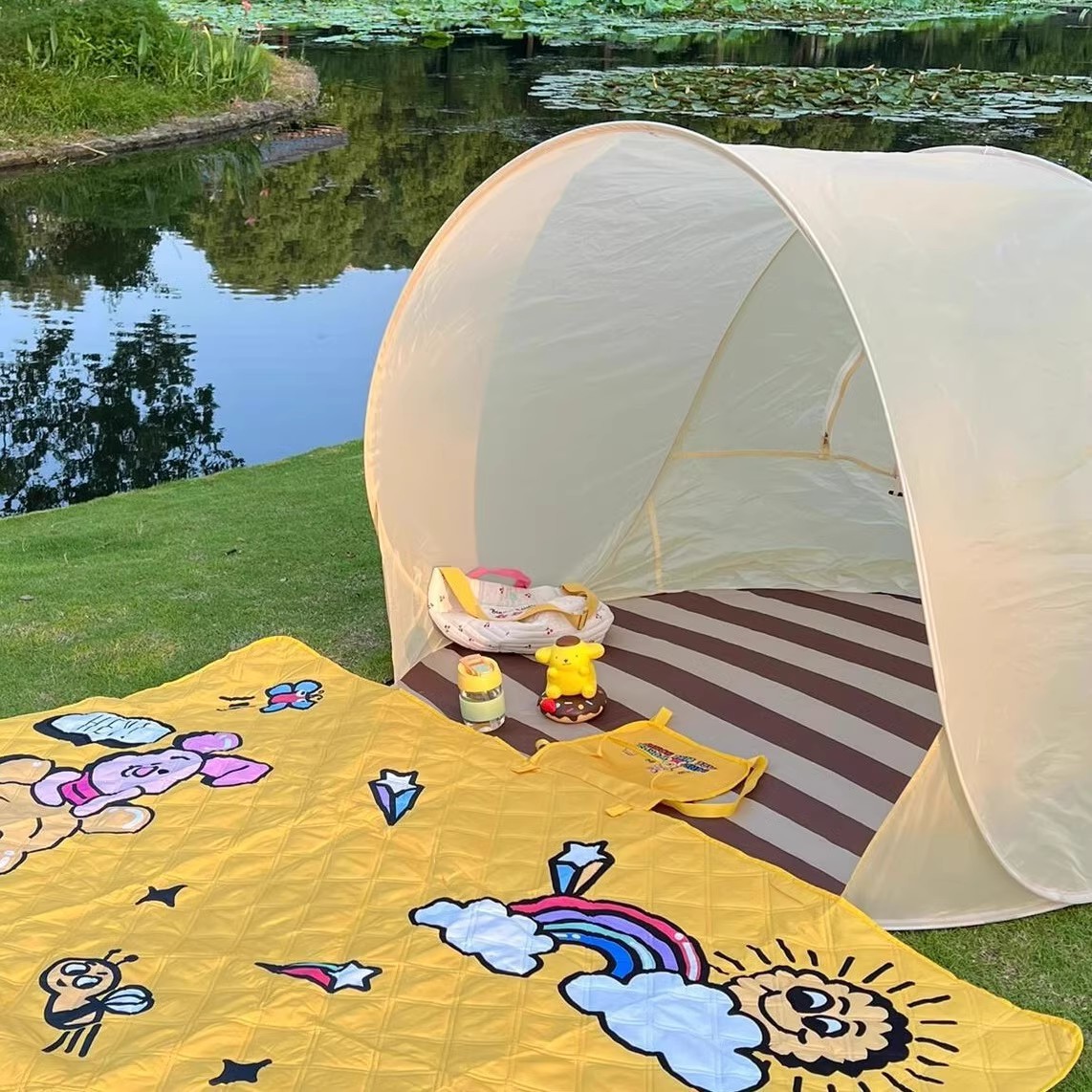 야외 캠핑 텐트, 원클릭 개폐, 휴대용 접이식 자외선 차단 및 비 방지 어린이 봄 나들이 장비, 해변 게임 하우스