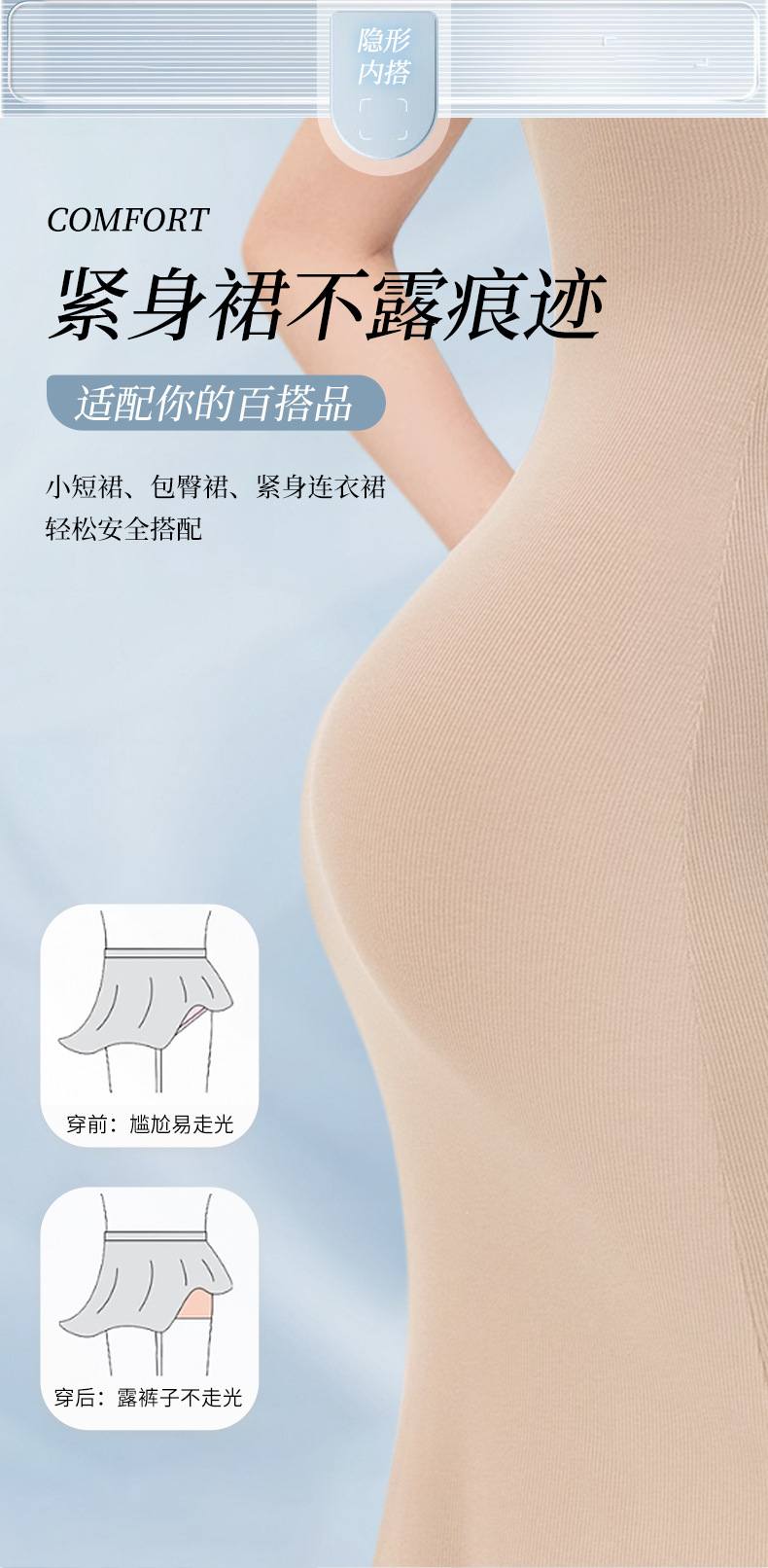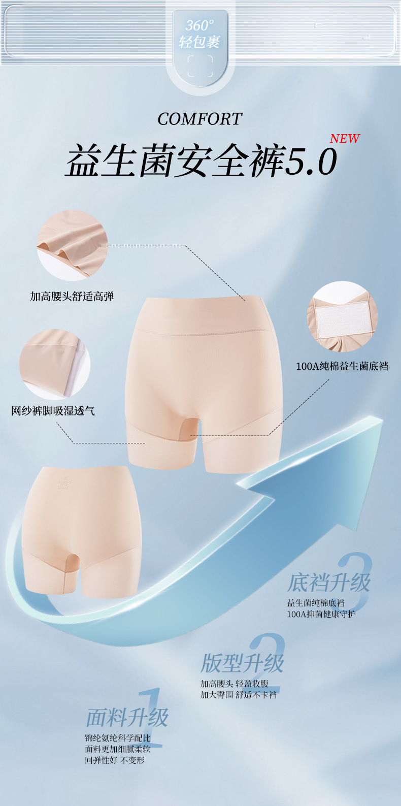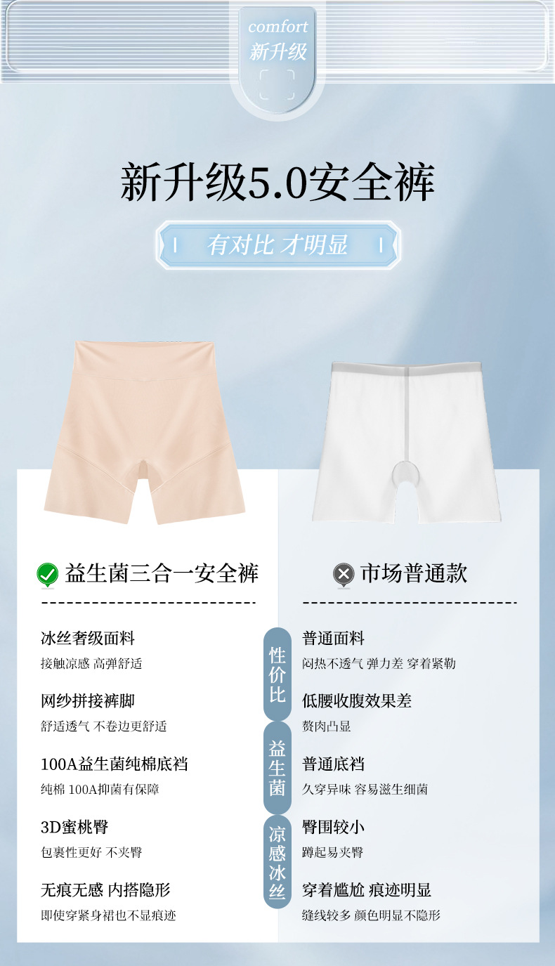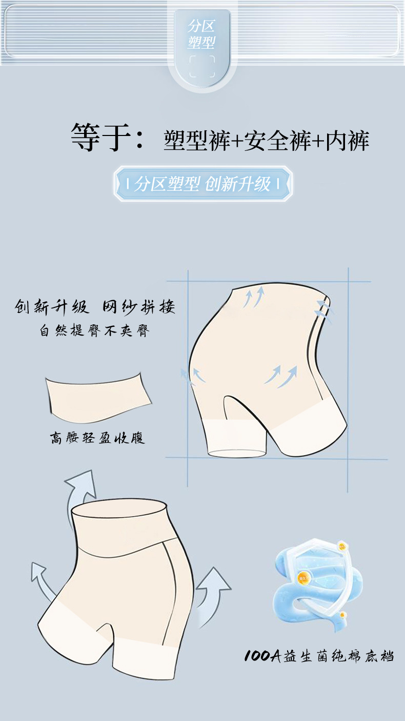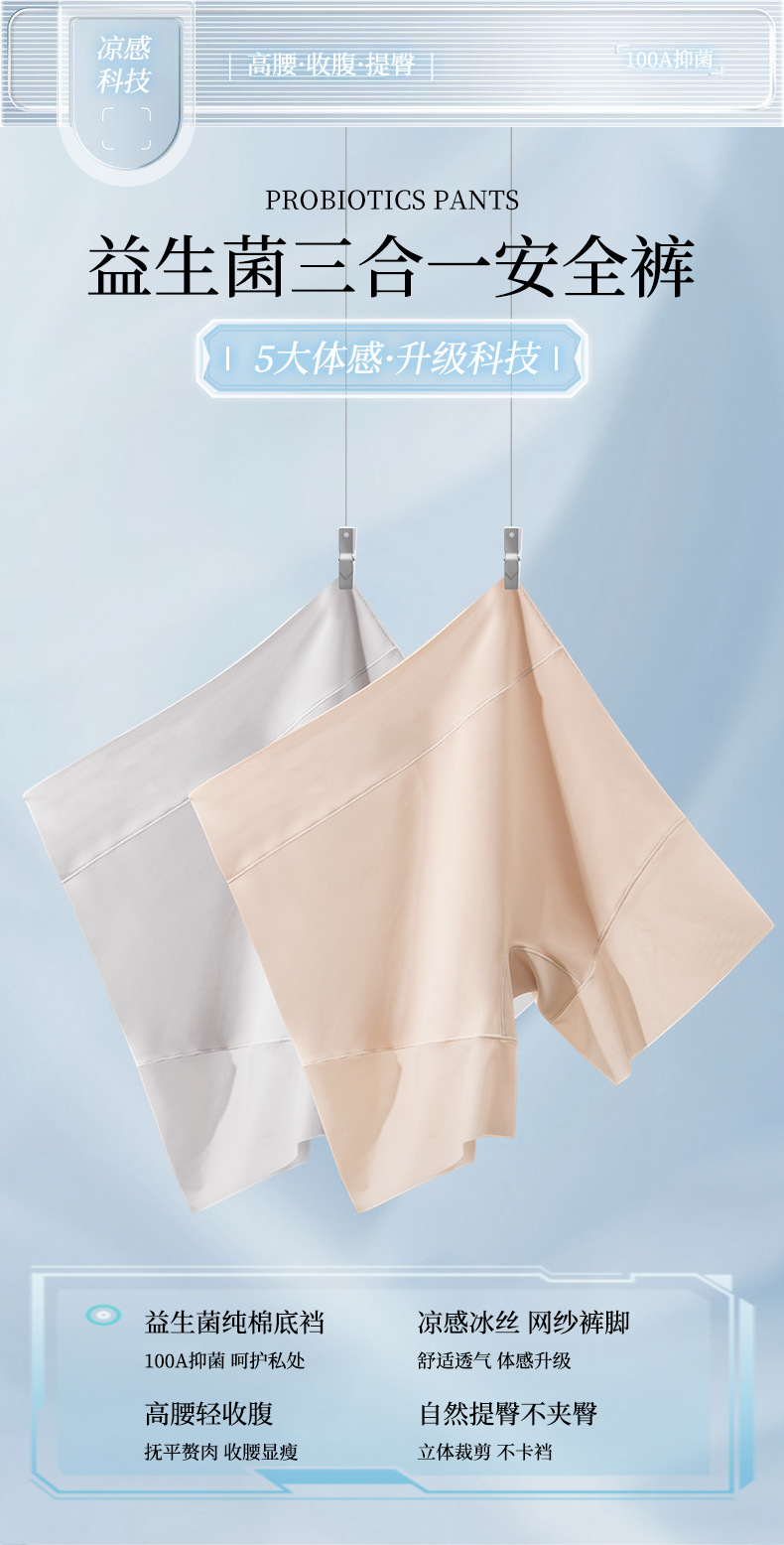 100A 프로바이오틱 원피스 3-in-1 안전 팬츠, 여름용 무봉제 초박형 노출 방지 하이웨이스트 배 컨트롤 레깅스스토어 가기
