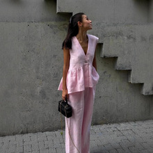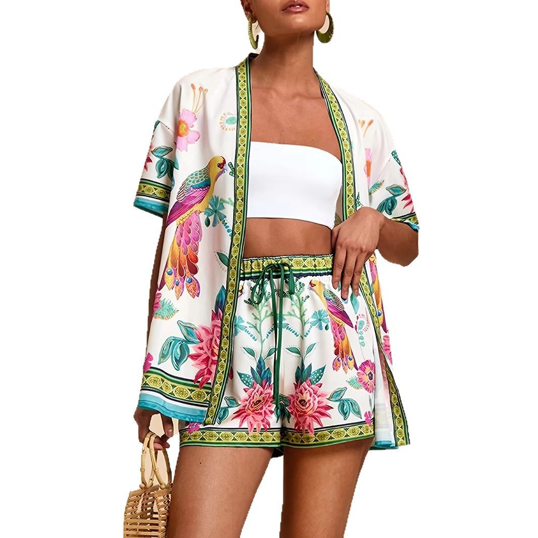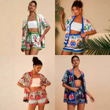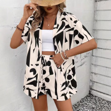 2026년 신상 유럽 및 미국 여성 패션 투피스 세트, 열대 프린트 반팔 상의와 새로운 반바지 스타일
