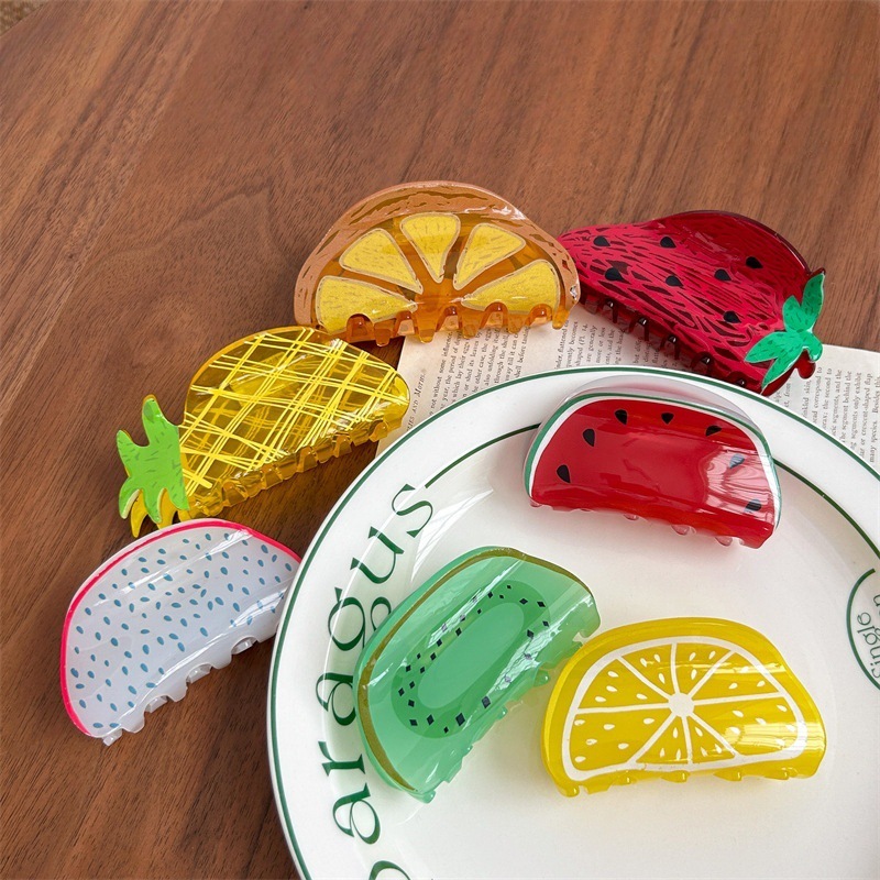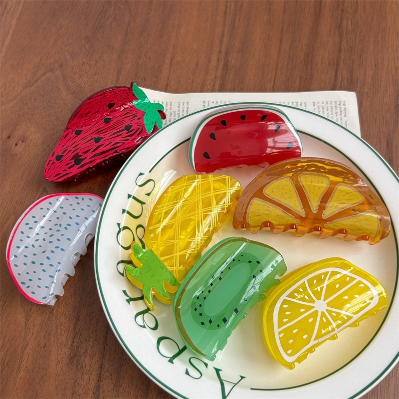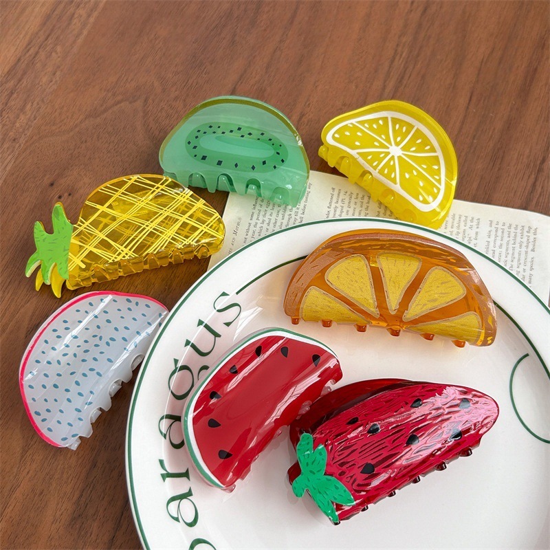 크리 에이 티브 과일 레몬 클립 아크릴 헤어 액세서리 헤어 클립 뒷머리 헤어 클립 한국어 버전 상어 클립 도매 귀여운
