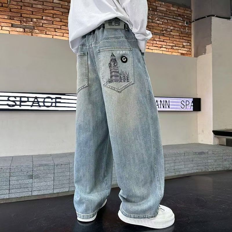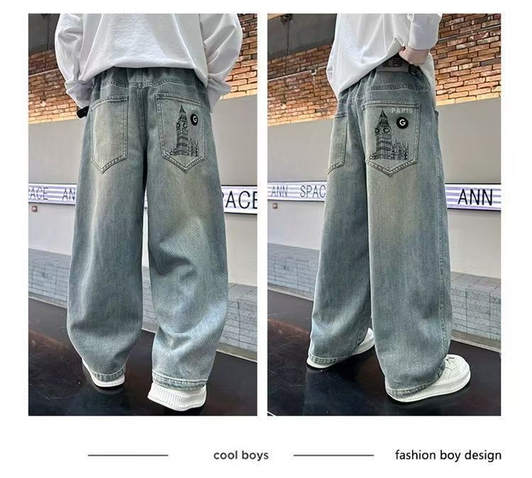 2025 봄, 가을 새로운 스타일 소년 청바지 중대형 어린이 스타일 느슨한 캐주얼 바지 소년 봄 바지스토어 가기