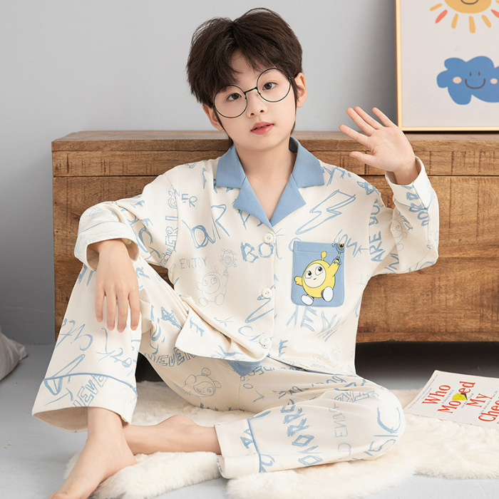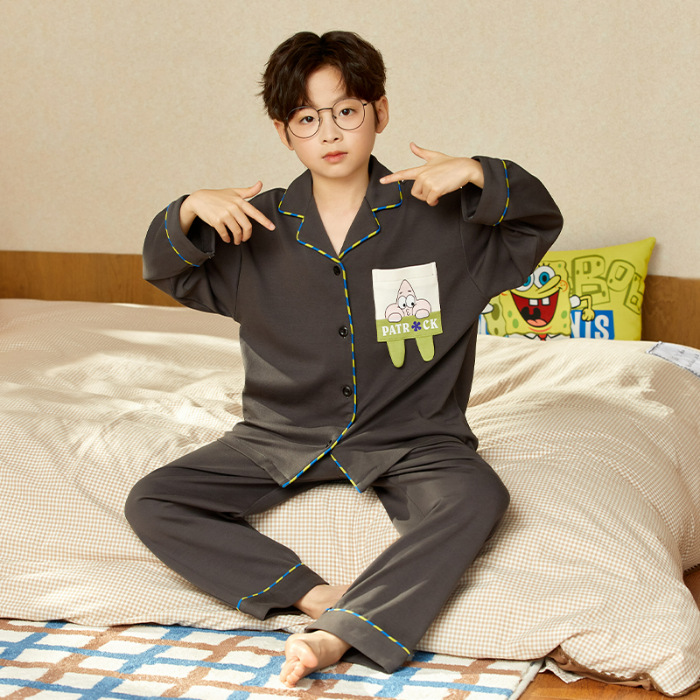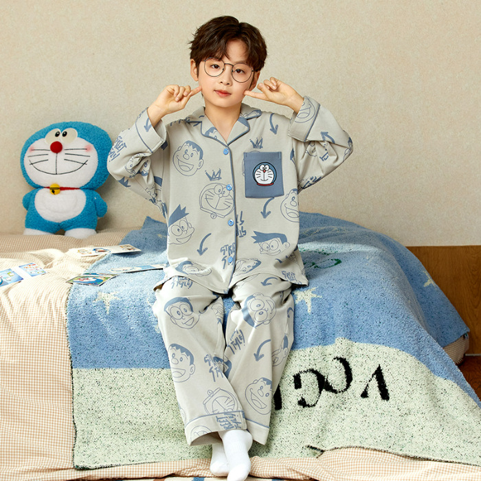 소년 아동 잠옷 봄, 가을 순면 만화 캐릭터 카라 가디건 긴팔 중학생용 얇은 스타일 중대형 아동 홈웨어스토어 가기