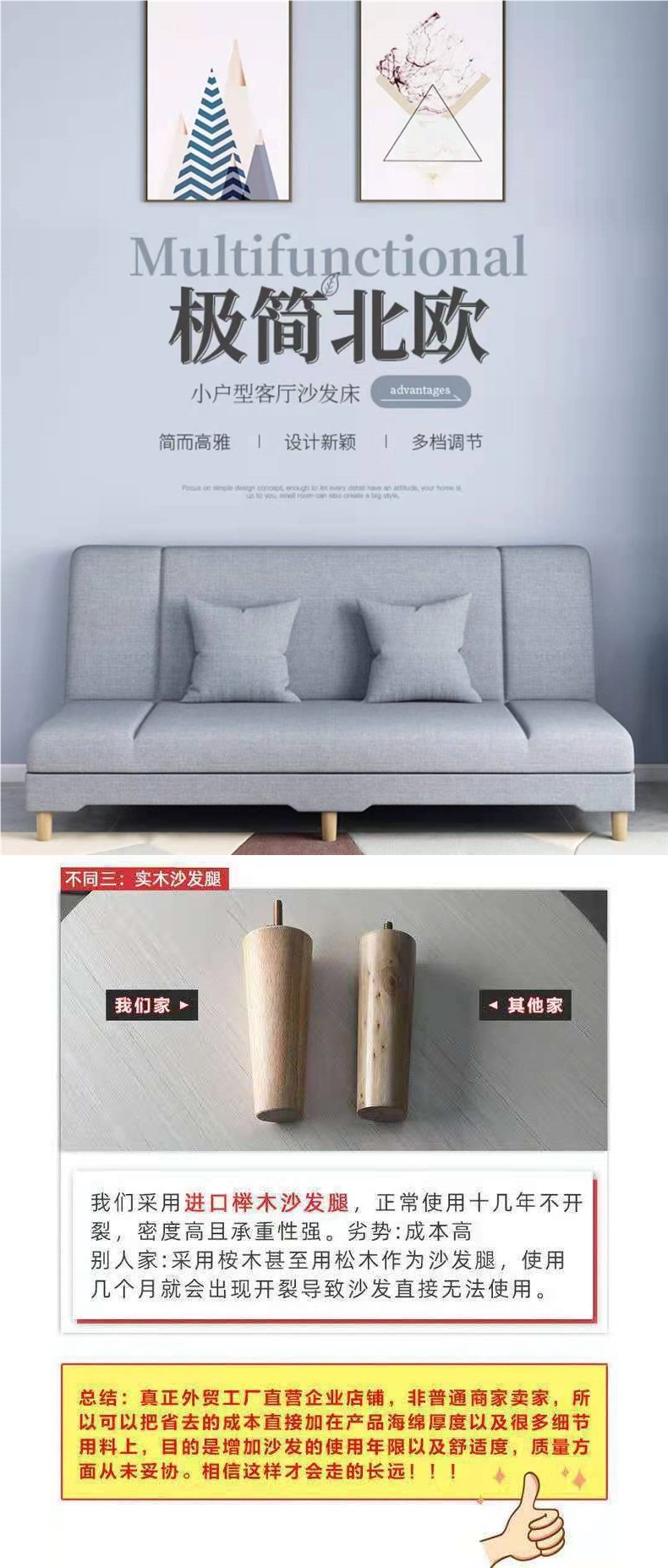 소형 아파트용 소파, 게으른 소파 베드, 올인원 다기능 접이식 소파, 심플한 패브릭 소파