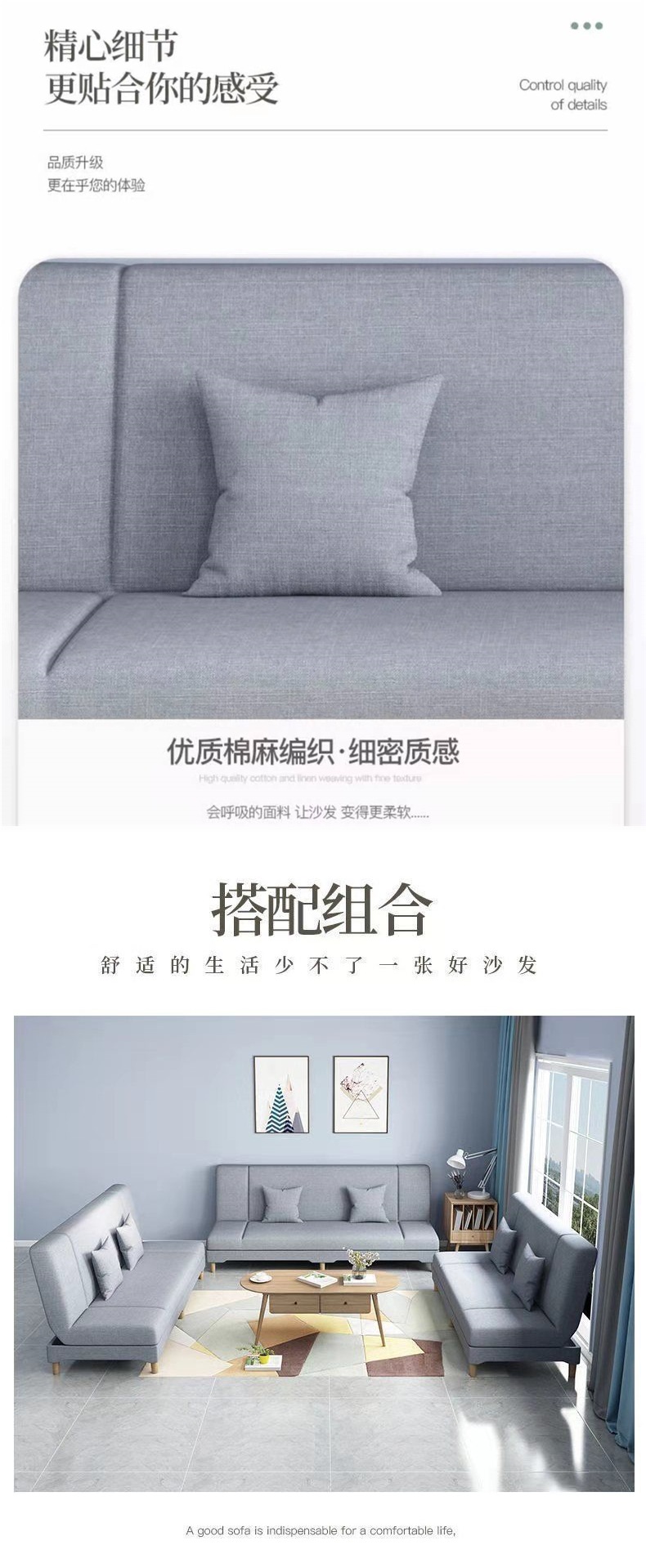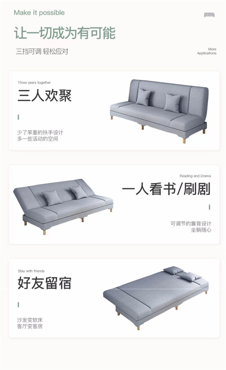 소형 아파트용 소파, 게으른 소파 베드, 올인원 다기능 접이식 소파, 심플한 패브릭 소파스토어 가기