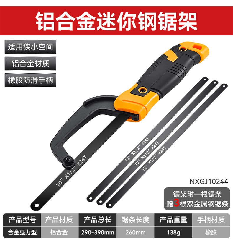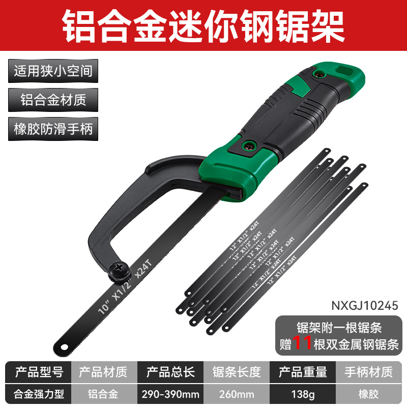 미니 고무 손잡이 수제 톱 톱 프레임 290-390mm 가정용 소형 톱 전기 도금 알루미늄 합금 톱 프레임