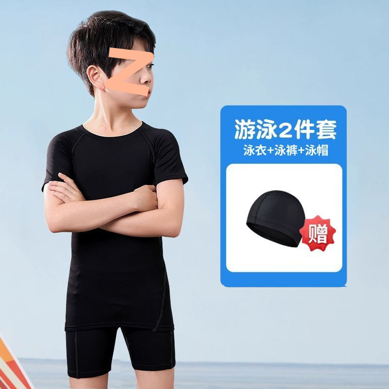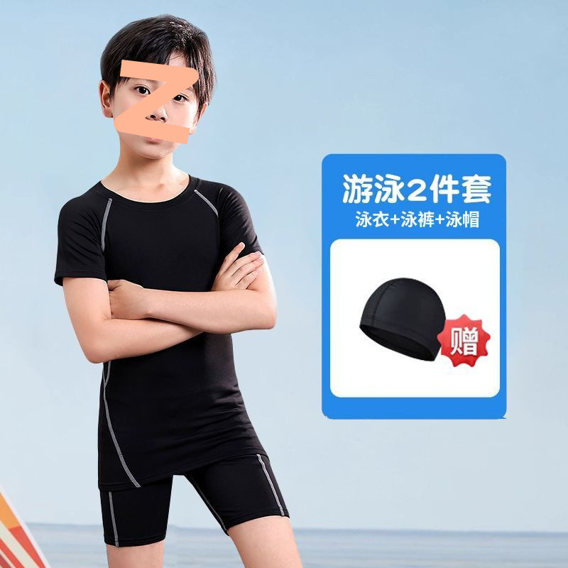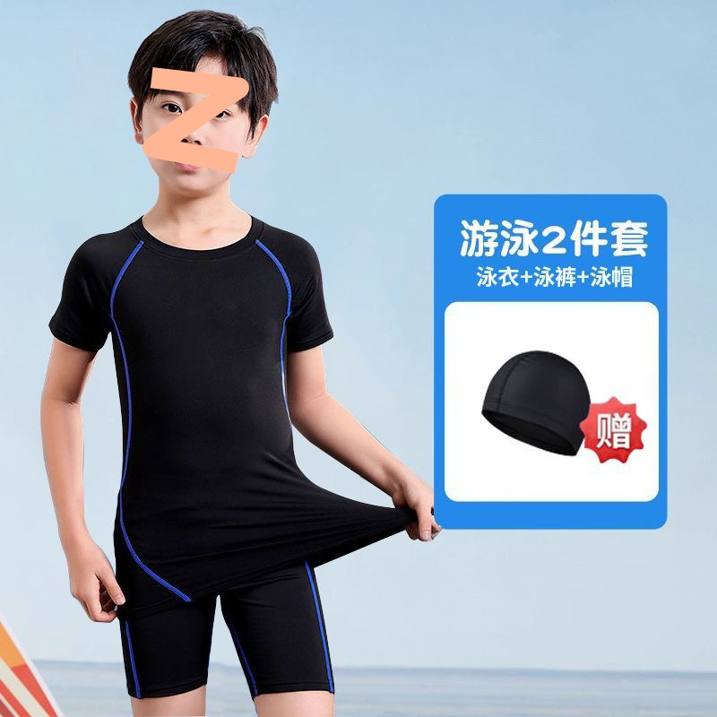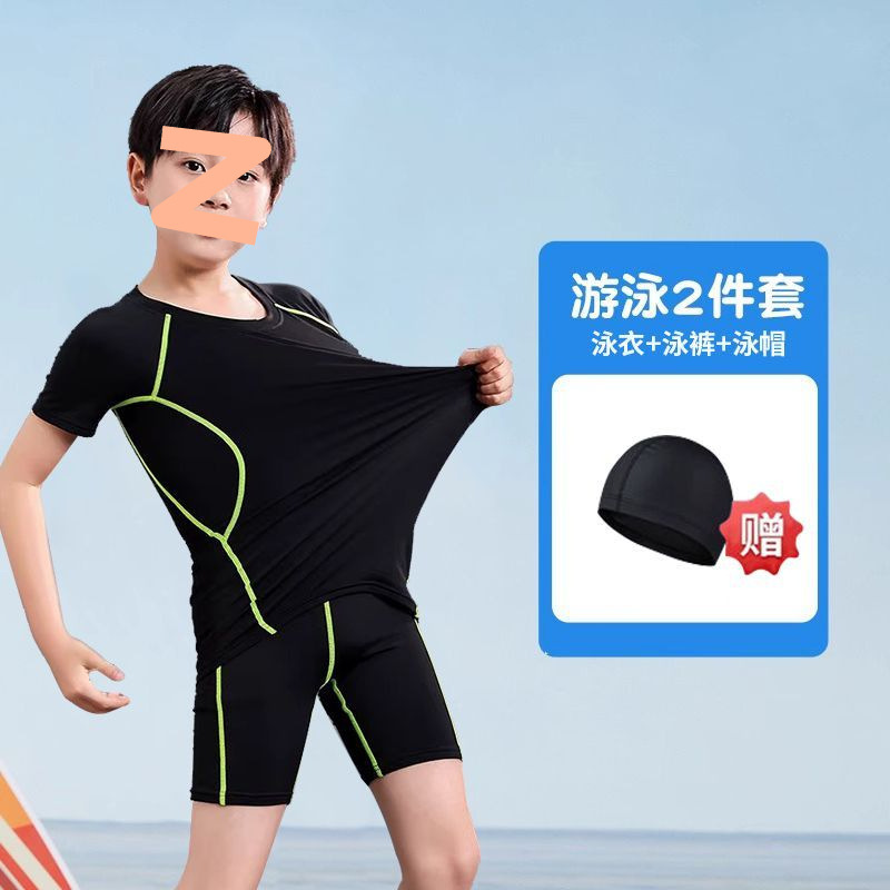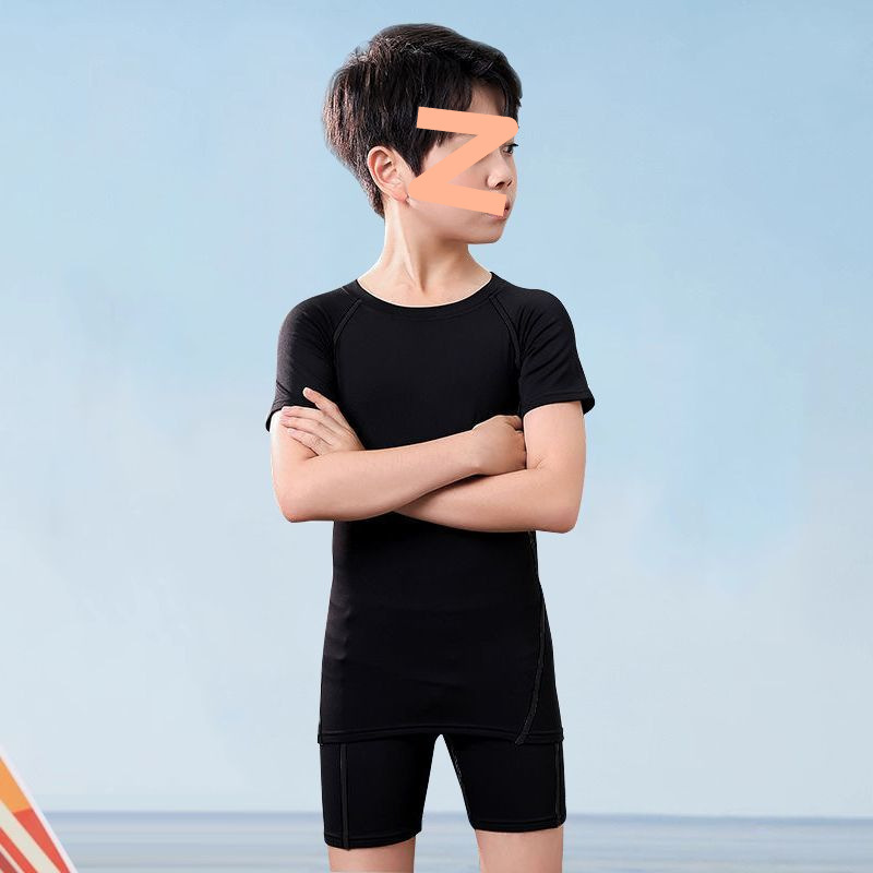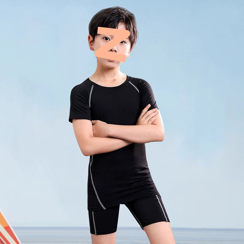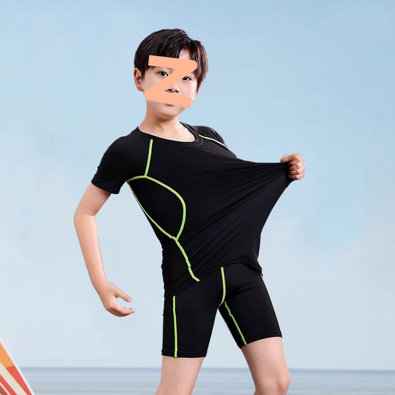 어린이 수영복 남성용 소형, 중형 및 대형 어린이 청소년 스플릿 소년 수영복 여름 2025 새로운 자외선 차단 수영 트렁크 세트