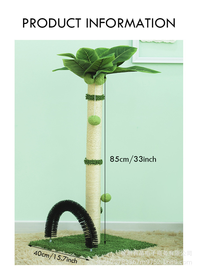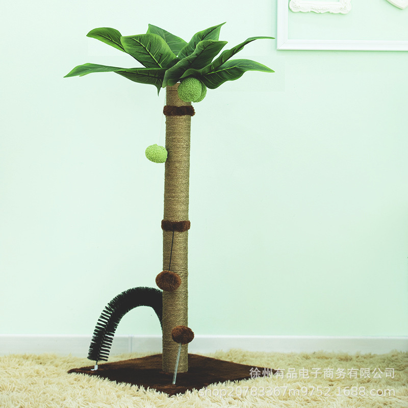 새로운 고양이 클라이밍 프레임, 세이지 장난감, 고양이 스크래치 기둥, 브러시 포함, 세로형, 내구성이 뛰어나고 부스러기가 없는 대형 코코넛 나무 고양이 스크래치 기둥