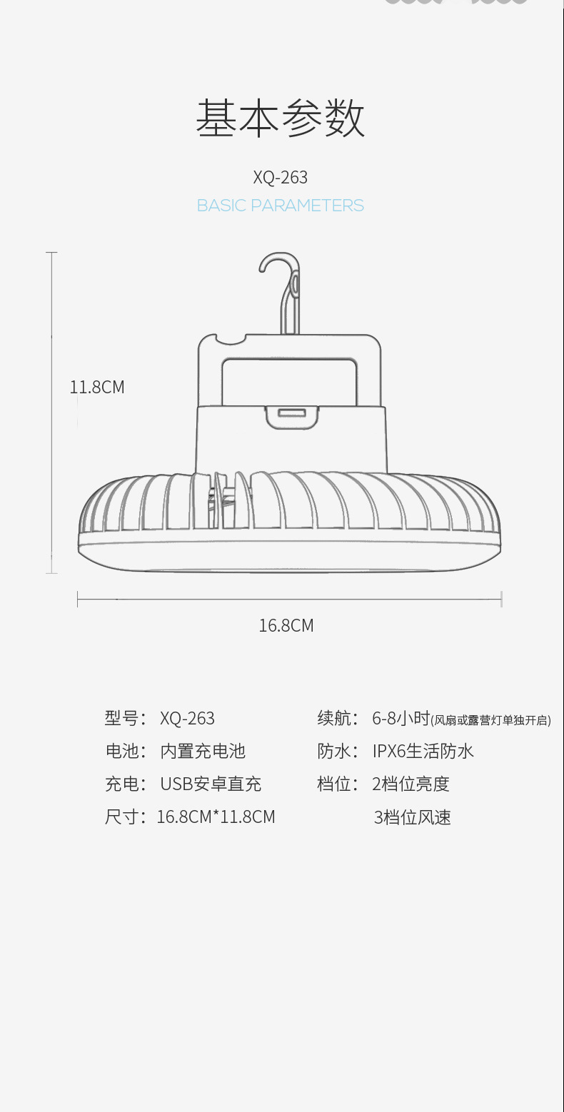 • XQ-263 다기능 야외 팬 캠핑 라이트