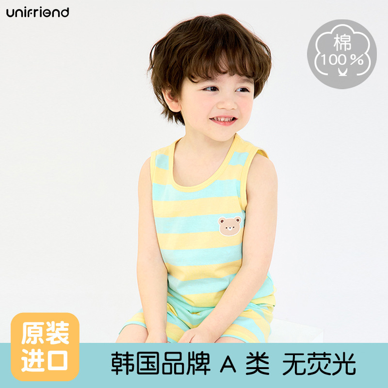 Unifriend 어린이 잠옷 세트 민소매 조끼 여름 얇은 소년 소녀 아기 조끼 순수 코튼 카테고리 A스토어 가기