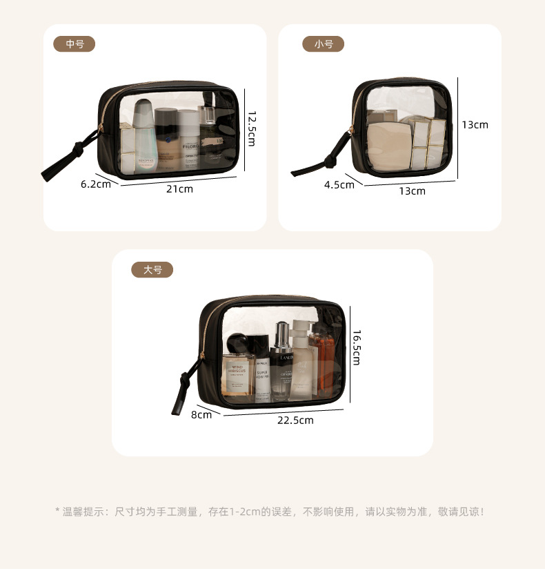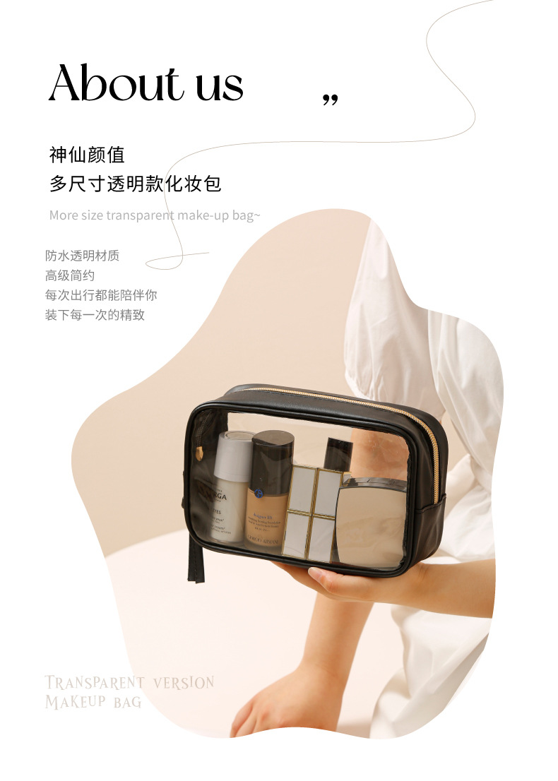 세면 용품 가방, 여행용 휴대용 투명 휴대용 화장품 보관 가방, 대용량 PVC 시각적 방수 화장품 가방