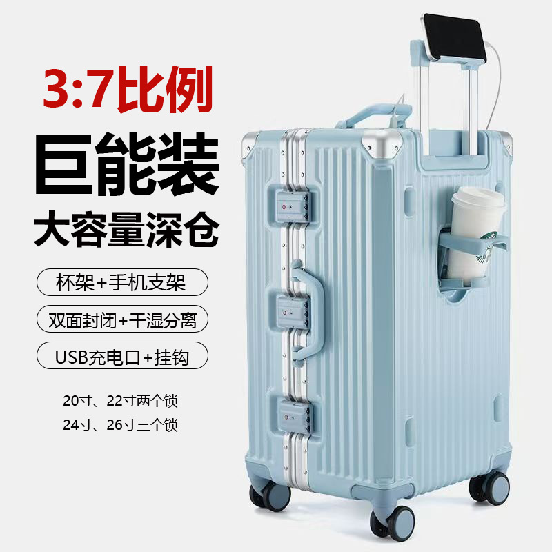 다기능 대용량 여행가방, 튼튼하고 내구성이 뛰어난 트롤리 여행가방, 남녀공용 비밀번호박스, 20inch 탑승가방