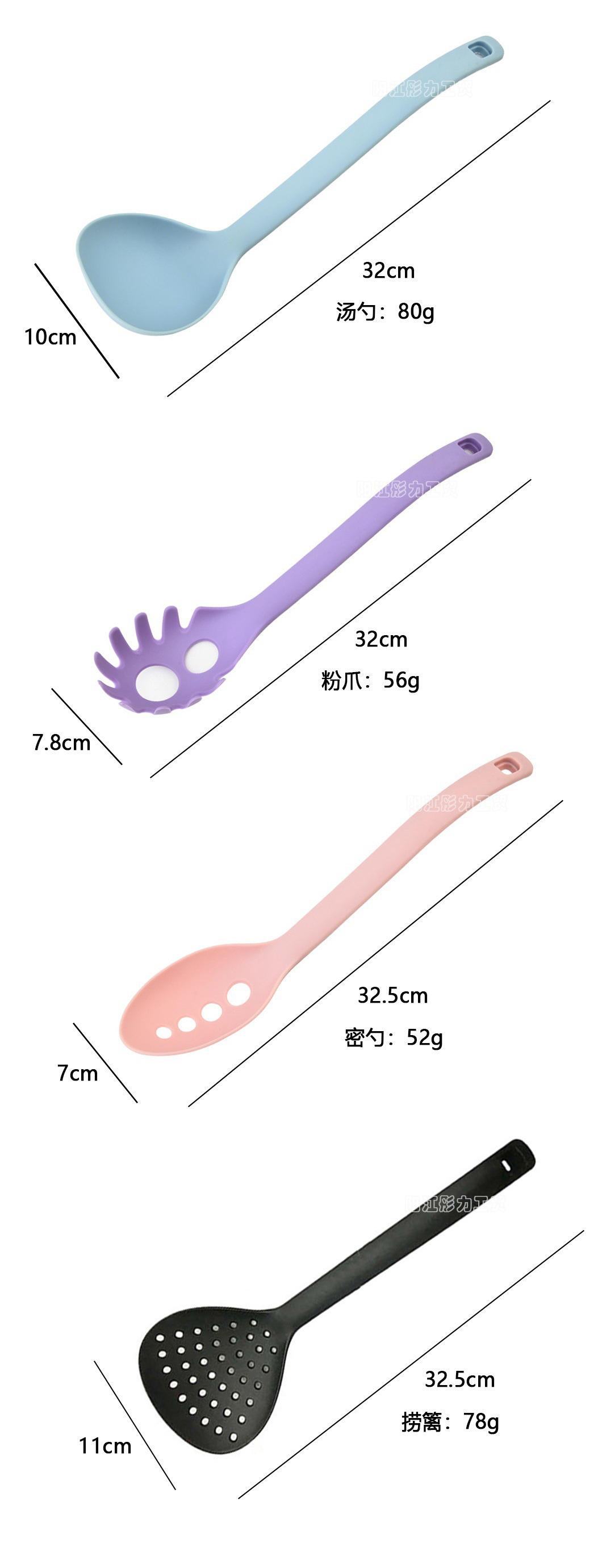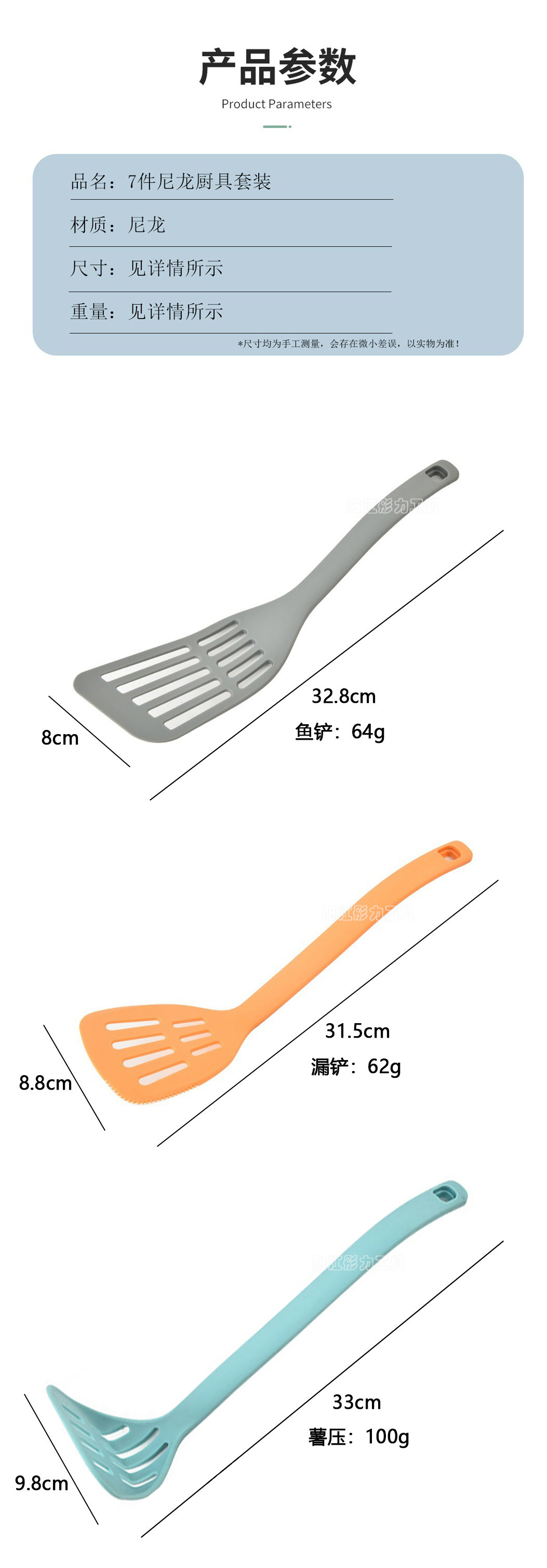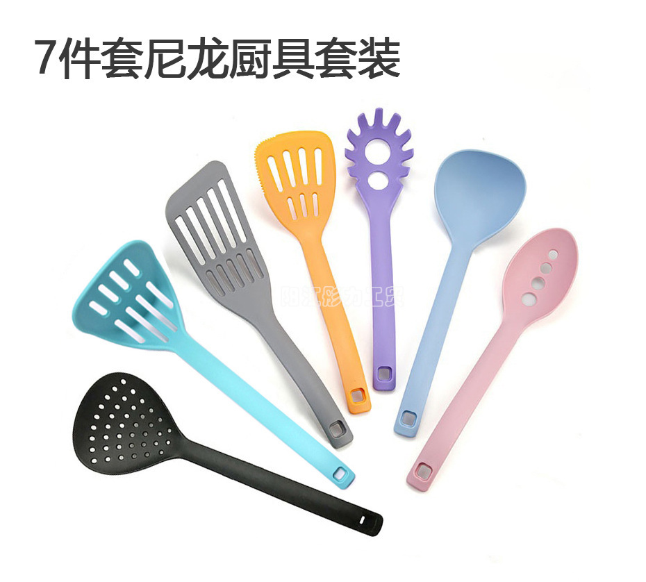 보관이 용이한 국경 간 다채로운 나일론 주방용품 7종 세트, 스탠딩 주걱 세트, 논스틱 팬, 가정용 주방 도구