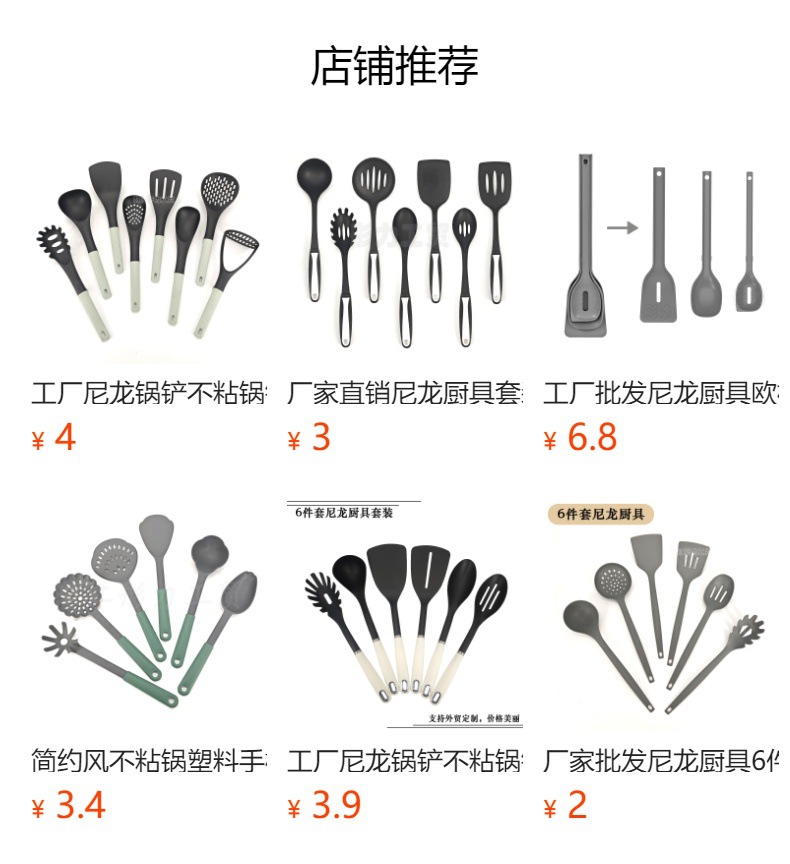 보관이 용이한 국경 간 다채로운 나일론 주방용품 7종 세트, 스탠딩 주걱 세트, 논스틱 팬, 가정용 주방 도구스토어 가기