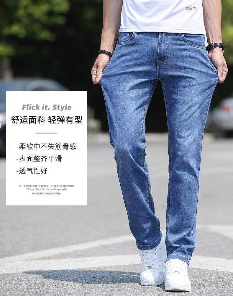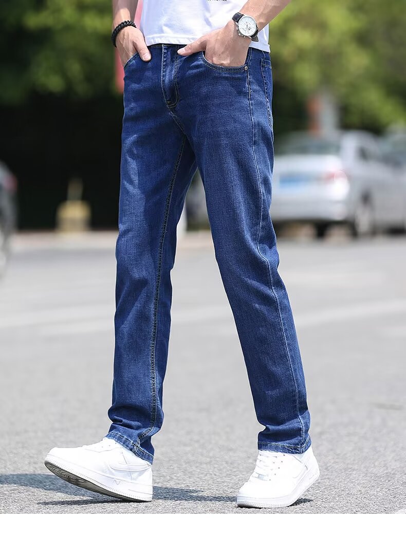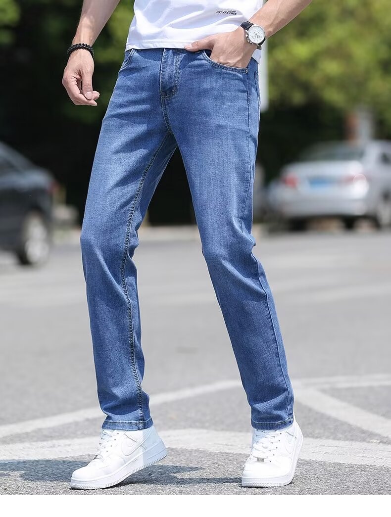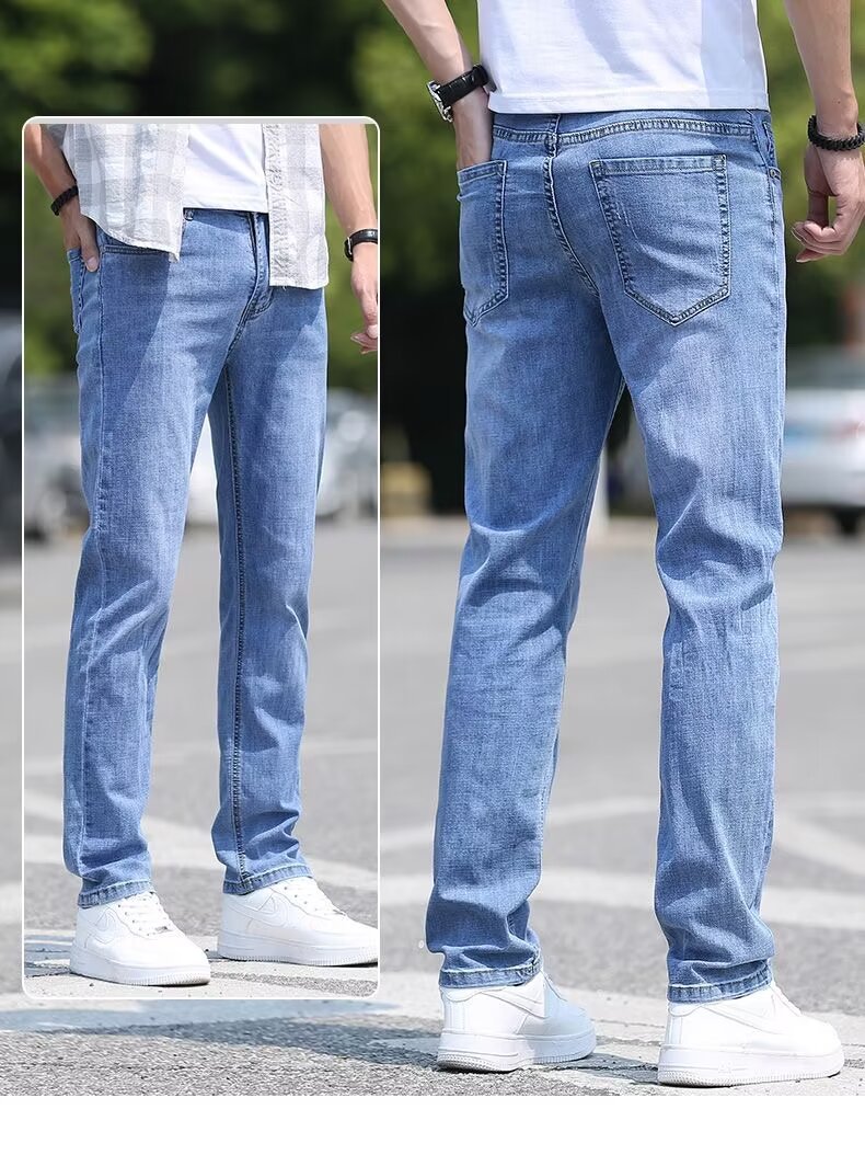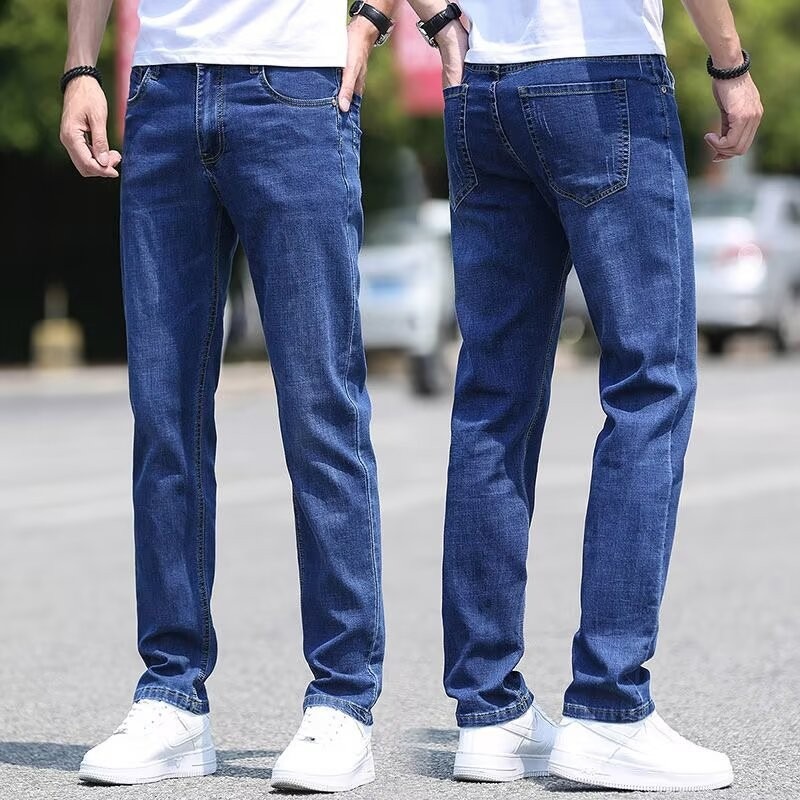 남성용 아이스 실크 청바지 남성용 얇은 여름 2024 새로운 복고풍 루즈 스트레이트 캐주얼 남성용 심플 롱 팬츠스토어 가기