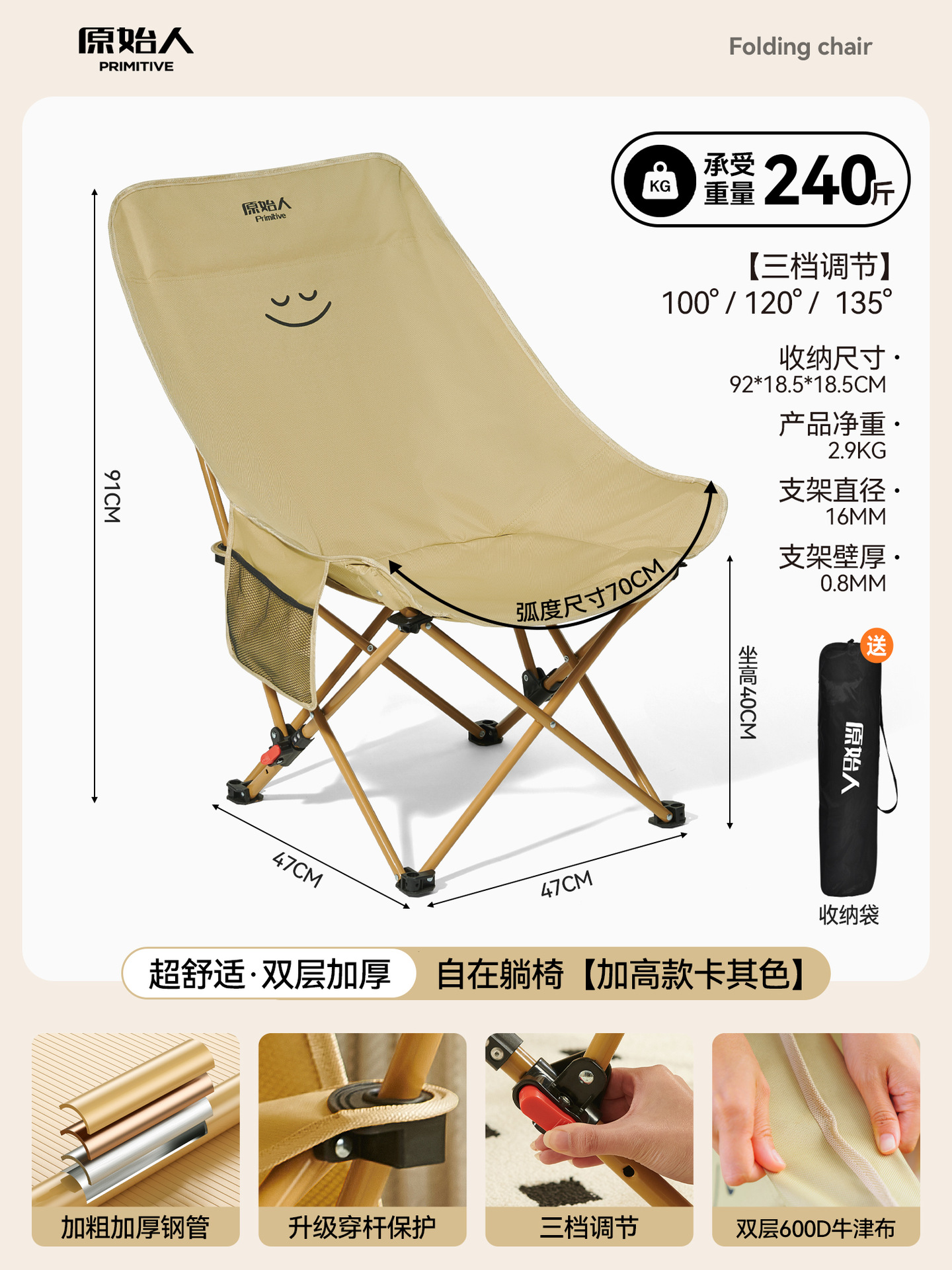 원시 야외 달 의자 접이식 의자 안락 의자 캠핑 의자 해변 의자 휴대용 피크닉 새로운 조절 가능스토어 가기