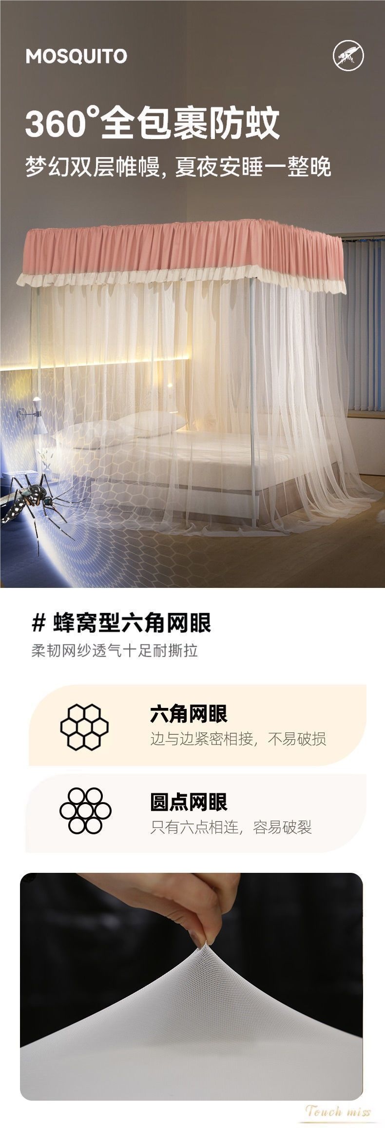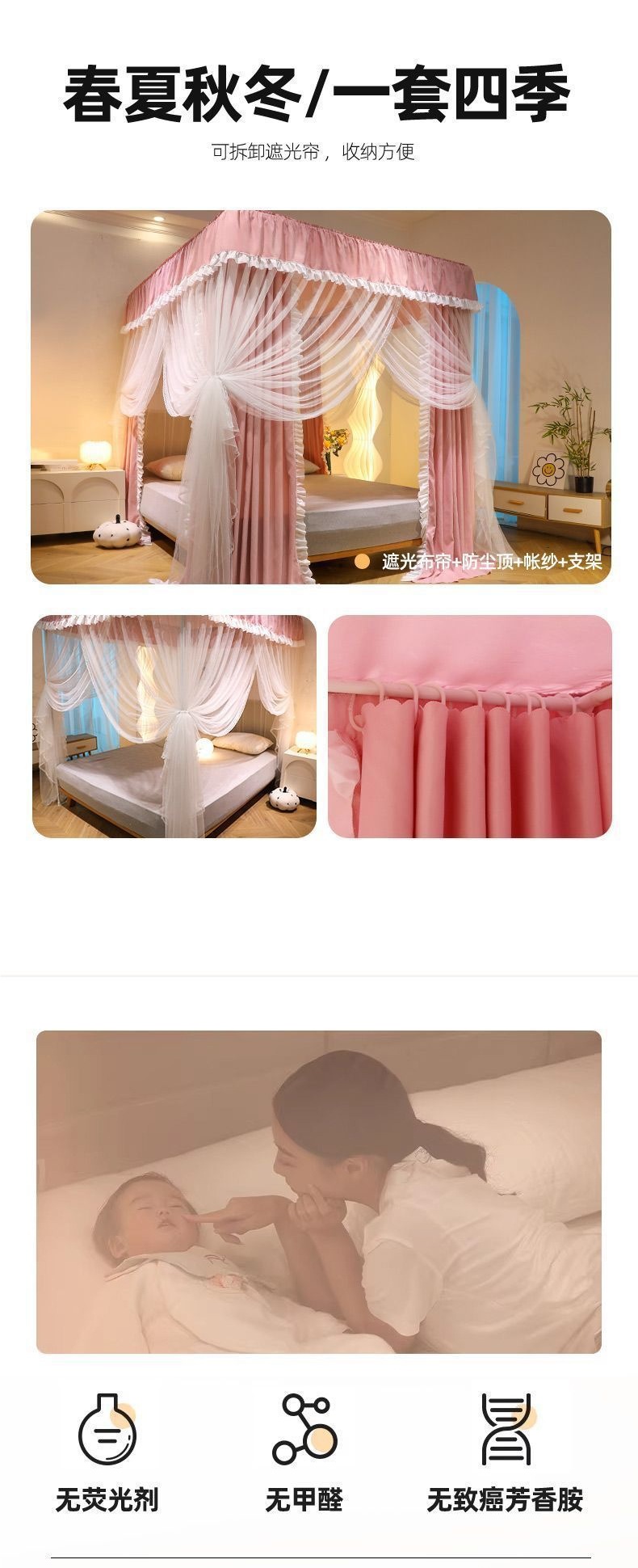 • ❁ [레이스핑크] 암막커튼 + 암호화된 모기장 + 무료 브라켓 ❁