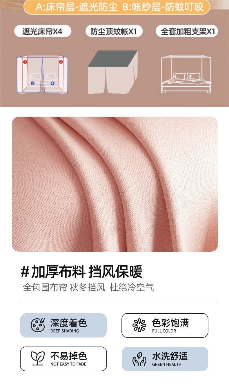 가정용 침실 차광 침대 커튼 모기장 일체형 새로운 겨울 방풍 및 따뜻한 바닥에서 천장까지 3 도어 침대 커튼스토어 가기